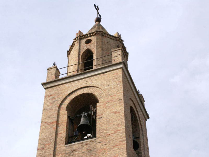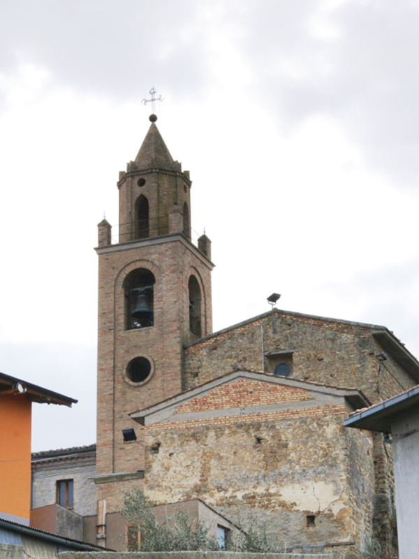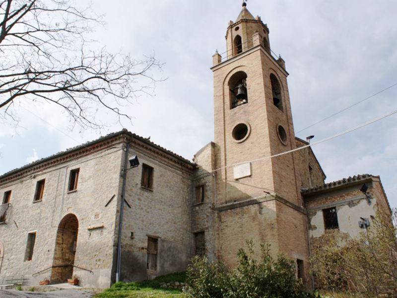 Si presenta con copertura a capanna e dell’impianto originario rimane forse solo una porzione di muratura ancora presente a vista sul suo lato sinistro. Quello che oggi possiamo vedere è il frutto di una importante ristrutturazione effettuata nel 1932 mentre era parroco don Eugenio Bizzarri. Su un laterizio rimesso in opera proprio sulla parete sinistra si legge la data 1741, mentre sulla chiave di volta di un arco sull’edificio conventuale affiancato alla chiesa è leggibile la data 1871. Sulla sommità di un arco in un’altra ala dello stesso edificio su un laterizio c’è incisa la data 1884. Il campanile, completamente in laterizio, ospita due campane ed è appoggiato alla parte posteriore della parete destra della chiesa. Fu costruito nel 1934 nell'ambito del desiderio di miglioramento di tutti gli edifici religiosi della provincia in occasione dell’XI Congresso Eucaristico Nazionale che si tenne a Teramo dal 4 all’8 settembre di quell’anno.