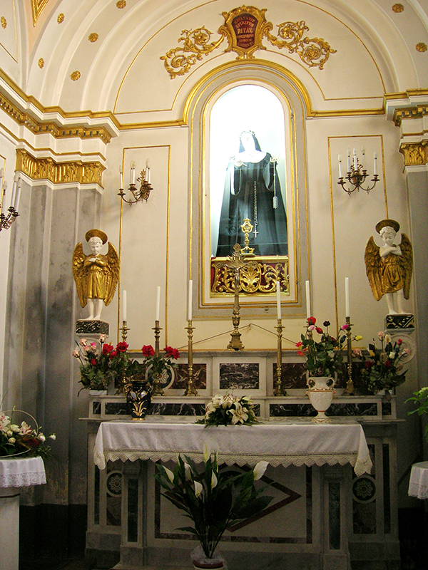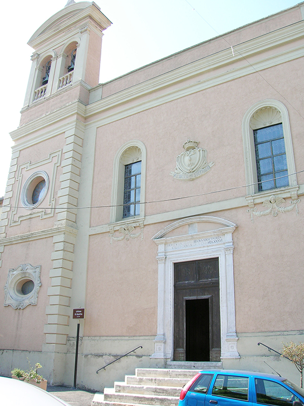 Venne edificata a partire dal Duecento dai Padri Agostiniani Scalzi, i quali, tranne un breve periodo francescano, la gestirono fino al Seicento, quando la chiesa con l’annesso convento passò alle monache agostiniane. Queste introdussero il culto per Santa Rita da Cascia, tanto che oggi la chiesa è conosciuta anche come Santuario di S.Rita da Cascia. Con i Decreti Napoleonici del 1809 sia la chiesa che il convento vennero abbandonati, ma i cittadini continuarono ad averne cura. Oggi la chiesa è in ottimo stato ed il convento è stato trasformato in casa di riposo per anziani. La facciata, più volte modificata fino all’inizio dell’Ottocento, è di stile barocco ed è a coronamento orizzontale. Al posto del classico rosone è uno stemma su cui è rappresentata la morte e su cui è la scritta Suffragio in ossequio alla Confraternita dei Fratelli del Suffragio che nel 1875 fece restaurare la chiesa. Su di essa si apre un semplice portale rinascimentale ad architrave piano su cui campeggia la data 1586. Si tratta però del portale della non più esistente chiesa conventuale di S.Antonio lì rimesso in opera, la cui scritta completa è “Non est hic aliund(e) nisi Domus Dei et Porta Celi et Domus Orationis - MDLXXXVI” (qui non c’è altro che la Casa del Signore, Porta del Cielo e luogo di preghiere – 1586). Dalla parte sinistra del tetto si erge un campanile a vela per due campane. L’interno, in stile barocco, è a navata unica con soffitto interamente decorato; termina in un’abside in cui è compresa la zona presbiteriale. A sinistra appena dopo l’ingresso è la Cappella di S.Rita da Cascia realizzata sul finire del Settecento; a questa Santa vengono attribuite alcune guarigioni miracolose avvenute in Atri.