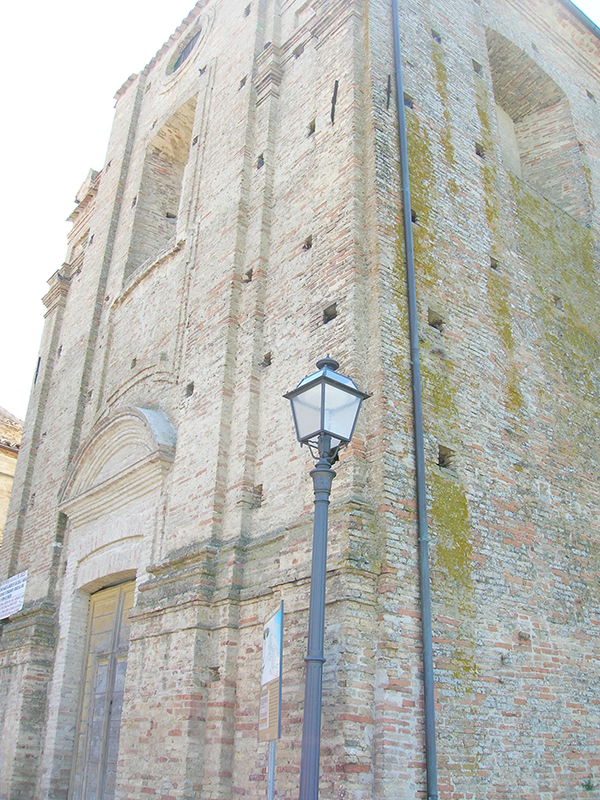 Ormai da molti anni non più officiata, è stata edificata tra il 1735 ed il 1780 sul sito precedentemente occupato dalla chiesa medievale dei Santissimi Apostoli o di Santa Maria del Suffragio. La chiesa si compone di tre spazi liturgici: vano chiesastico superiore, cappella del Cristo Morto e chiesa delle sepolture nel piano inferiore. Il presbiterio è occupato dalla cantoria e dalla corte della confraternita, in legno dipinto. Sulla pala dell'altare maggiore è posta una tela raffigurante la Madonna del Suffragio, mentre gli altari laterali appartenevano a famiglie private. La facciata della chiesa è incompleta ma rivela chiari caratteri barocchi, mentre il campanile è un vero gioiello d'architettura.