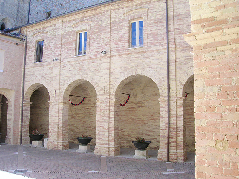 A lato della chiesa di San Francesco si sviluppa l'elegantissima facciata del convento, con finestre a timpano, cui fa riscontro l'incompleto chiostro interno con parti medievali; da questo spazio si può osservare l'elegante torre campanaria a tre ordini con bifore e arcatelli risalenti al secolo XIV. Oggi la struttura ospita gli uffici comunali.