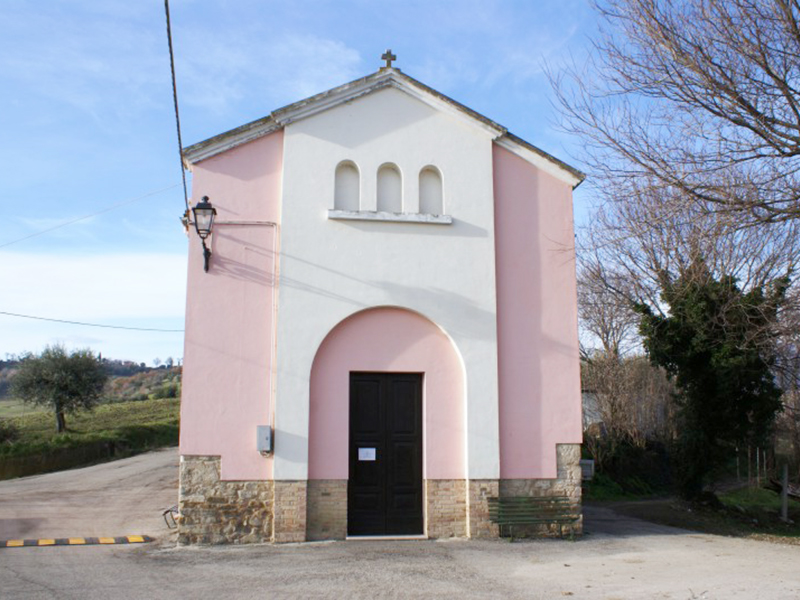 Piccola e graziosa è databile all'inizio del XVII secolo ed attualmente si presenta verniciata di un inusuale rosa; è con copertura a capanna e sulla facciata permangono le tre edicole che un tempo ospitavano i tre simboli della Trinità. Alla parete posteriore è appoggiato un campanile a pianta quadrata che ospita una campana. All'interno è conservata un'acquasantiera in pietra decorata da motivi ornamentali ed una tela probabilmente seicentesca raffigurante la SS. Trinità e S.Antonio da Padova.