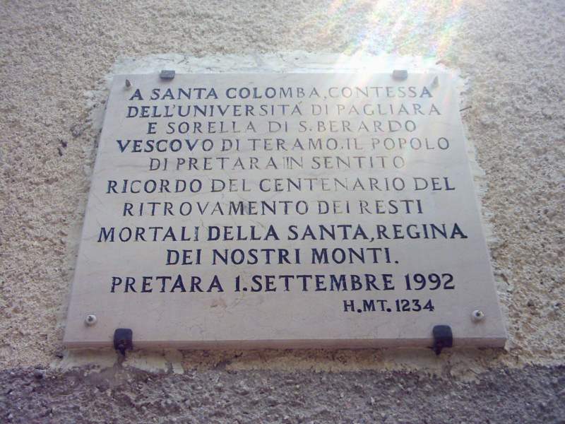 E' abbarbicato su uno spuntone di roccia quasi sulla vetta del Monte Infornace. Risalente al XVII secolo, è poco più di una cappella, dotata di tre finestre, e potrebbe tranquillamente essere scambiata per una semplice baita, se non fosse per una rassicurante campana sorretta da un piccolo campanile a vela. L'interno è a forma trapezoidale, con il presbiterio rialzato di due gradini. Sull'altare troneggia la statua di Santa Colomba e di fianco è visibile un'apertura che un tempo custodiva le reliquie della Santa. Su una lapide apposta su una parete si legge "ANNO DOMINI MDCXXXXVII SACERDOS D.ROMUALDUS TATTONUS INSULANUS CARITATE SUIS MANIBUS FECIT HOC OPUS. FR. IO. EREMITA MINISTRANTE". All'esterno, sopra la porta d'ingresso, un'altra lapide recita: "A SANTA COLOMBA, CONTESSA DELL'UNI-VERSITA' DI PAGLIARA E SORELLA DI SAN BERARDO VESCOVO DI TERAMO, IL POPOLO DI PRETARA IN SENTITO RICORDO DEL CENTENARIO DEL RITROVAMENTO DEI RESTI MORTALI DELLA SANTA, REGINA DEI NOSTRI MONTI. PRETARA 1. SETTEMBRE 1992. H. MT.1234".