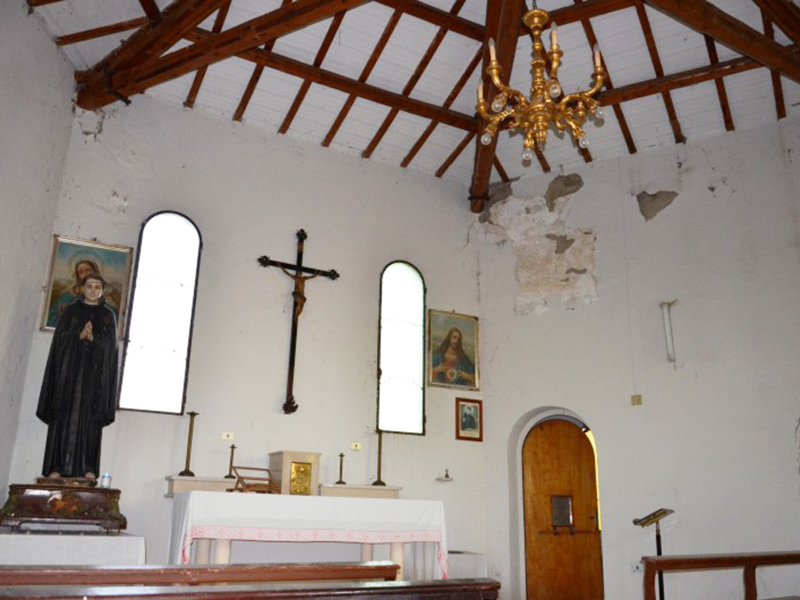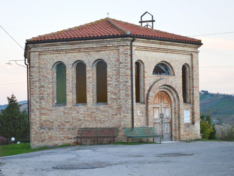 Un moderno edificio a pianta esagonale completamente in laterizio. Sulla facciata principale, quella che dà verso l'unica piazzetta, si apre un portale con arco a tutto sesto incorniciato anch'esso in laterizio. Ai suoi lati sono due finestroni alti e stretti, anch'essi con arco a tutto sesto, così come tutte le altre finestre che si aprono sui restanti lati. All'interno l'unica piccola aula ha copertura con capriate in legno a vista. La zona presbiteriale è sopraelevata di due gradini rispetto al resto ed ospita un semplice altare e una statua raffigurante S.Gabriele. Un piccolo campanile a vela realizzato in ferro si alza dalla parete posteriore e sorregge una piccola campana.