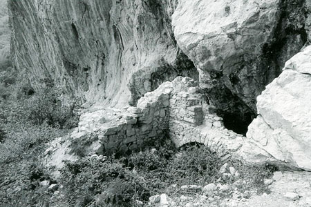 Di questo luogo rimangono alcuni resti di mura che chiudevano un riparo, ma è quasi tutto quello di cui possiamo disporre per dargli un nome ed ipotizzare un'origine, visto che la tradizione locale a riguardo è molto avara: ci dice solamente che il luogo era occupato dai monaci. Si tratta di una tradizione molto vaga, non suffragata da storie e leggende, e questa scarna notizia assume una certa credibilità solo grazie alla vicinanza del convento di S. Bartolomeo di Carpineto della Nora. I ruderi si trovano all'inizio di una formazione rocciosa, che si sviluppa per alcuni chilometri, molto interessante per i numerosi ripari e grotte nei quali si sono rinvenute alcune pitture rupestri che testimoniano la frequentazione della zona da parte di cacciatori dell'età del ferro. All'inizio della fascia di pareti c'è la "Portella di Nerone", una specie di passaggio obbligato, che dà accesso alle zone di montagna ed in particolare ai pascoli di Voltigno. Pertanto questa dipendenza del convento, probabilmente una piccola grancia con annessa chiesetta, aveva una posizione invidiabile.