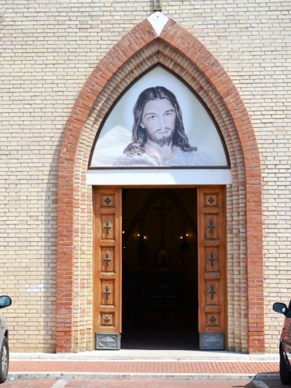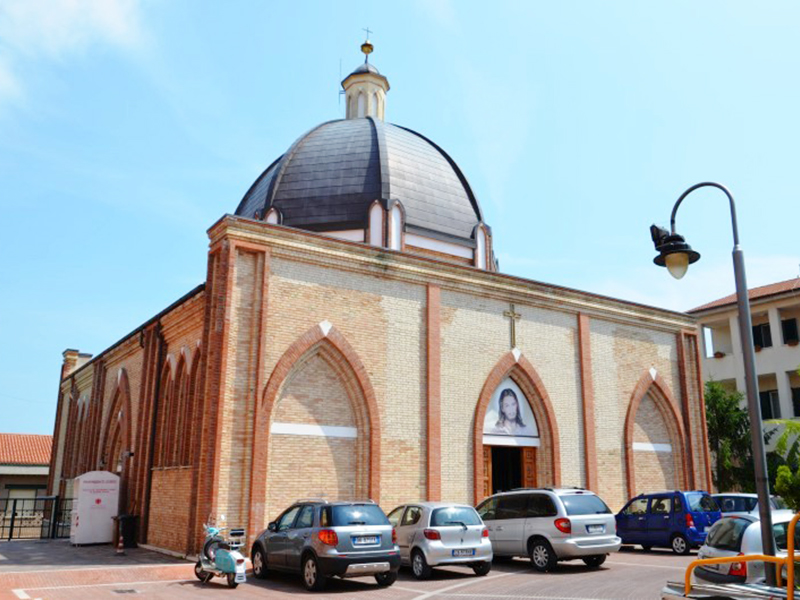 E' un moderno edificio in laterizio che sulla facciata a coronamento piano presenta tre arconi a sesto acuto, in quello centrale dei quali è incastonato il portale d’ingresso. L’interno è a navata unica e in corrispondenza dell’altare è una cupola esagonale sormontata da lanterna, palla e croce.
