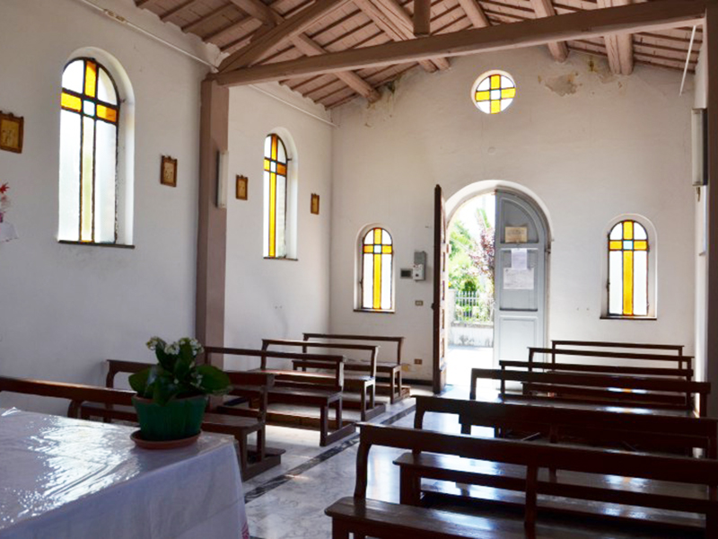 Si tratta di una chiesetta campestre costruita sul finire degli anni Cinquanta del secolo scorso, realizzata anche con il contributo di 150.000 lire concesso nel 1957 dal Pontefice Pio XII erogato tramite l’allora Vescovo di Teramo e Atri Stanislao Battistelli. L'edificio, con copertura a capanna, presenta sulla facciata un semplice portale con arco a tutto sesto, ai lati del quale sono due piccole finestre anch’esse incorniciate in laterizio e con arco a tutto sesto. L’interno, costituito da un’unica aula, è con capriate a vista. In corrispondenza della facciata sono due piccoli campanili a vela in ferro su uno dei quali è una piccola campana e sull’altro sono due campanelle più piccole.