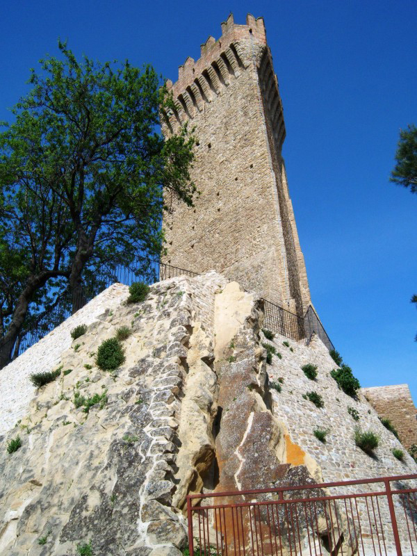Si tratta di una antica torre di avvistamento di cui si hanno notizie fin da prima dell’anno mille, che ha come particolarità di avere pianta triangolare, caso davvero raro nella nostra regione. Alta circa m.18, faceva parte di una vasta rete di comunicazione “a vista” per il controllo del territorio ed è appartenuta alla nobile famiglia De Sterlich a partire dal XVI secolo fino al 1976. Proprio in questo anno sono stati effettuati importanti lavori di restauro che hanno ripristinato l’antico aspetto della torre. La sua struttura è semplice, rastremata da beccatelli e merli ed è munita di accesso unico, da Nord, raggiungibile solo da una scala esterna. L’interno, dotato di feritoie e piccole finestre per l’osservazione esterna, è vuoto ed una scala in legno attualmente consente l’accesso alla parte superiore.