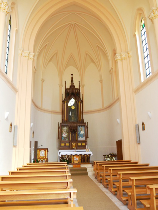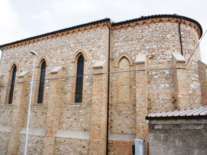 Costruita in sostituzione di quella ormai fatiscente che si trovava all’interno del cimitero cittadino, ha copertura a capanna e sulla facciata completamente in laterizio si apre un portale ad architrave piano sormontato da lunetta; nella parte superiore della facciata è un grande finestrone rotondo. Su ognuna delle pareti laterali si aprono tre finestre alte e strette con archi ogivali, mentre dalla parete posteriore si alza un piccolo campanile a vela per una campana. L’interno è ispirato allo stile gotico ed è ad aula unica che termina con un’abside. Qui, rialzata di due gradini, è posta la zona presbiteriale con un bell’altare ligneo.