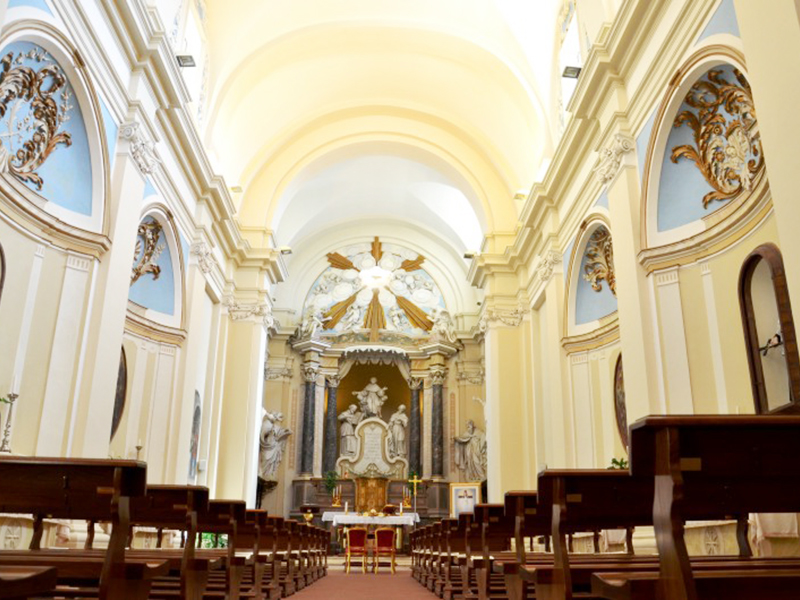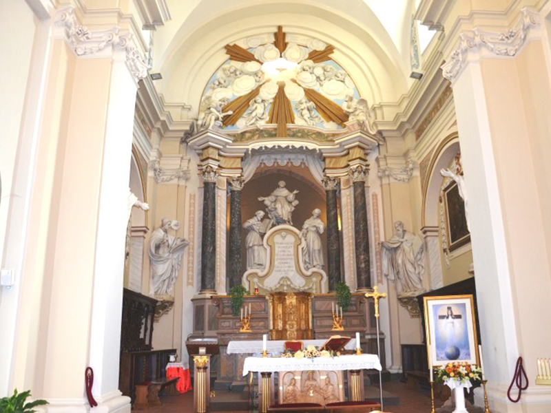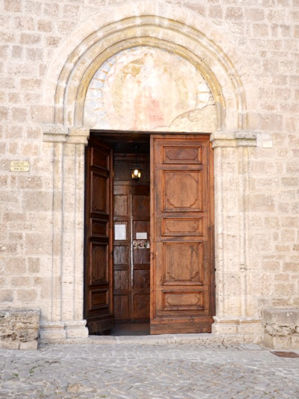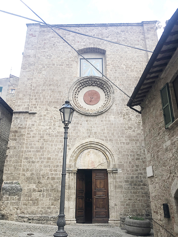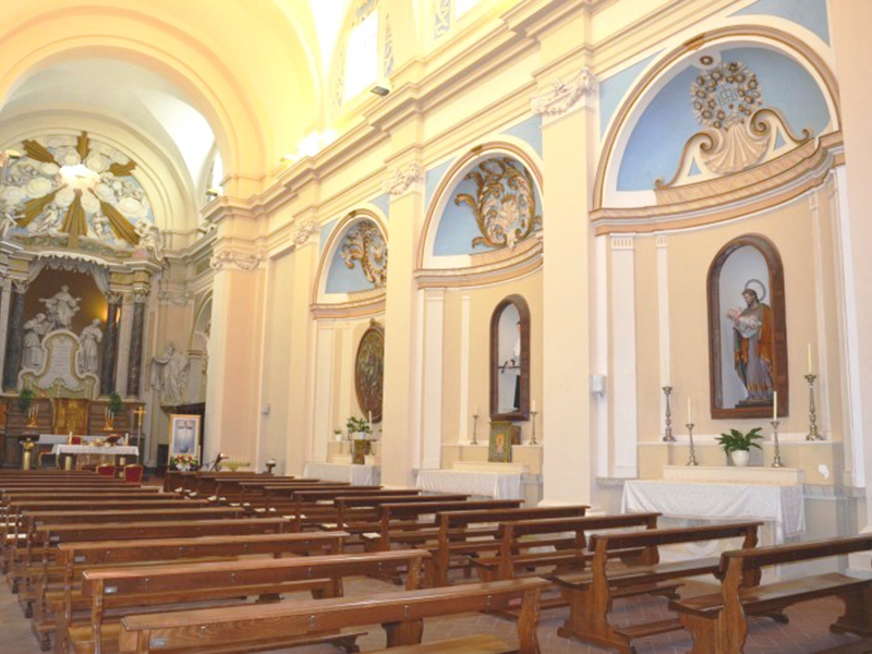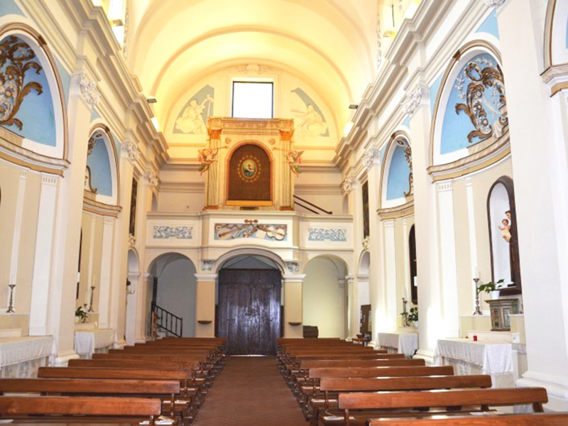 Risale almeno al XIV secolo, sotto la dominazione di Roberto d’Angiò, quando in alcuni documenti si fa menzione di una cappella dedicata a S.Ludovico collocata al suo interno. Venne fondata insieme all’adiacente complesso conventuale francescano, ceduto nel 1870 all’Amministrazione Comunale, che negli anni 1917-1920 lo trasformò radicalmente. L’attuale aspetto della chiesa è il frutto di una ristrutturazione con ampliamento del XVIII secolo; il più recente restauro risale agli inizi degli anni Duemila, con riapertura al culto nel 2003. Sulla facciata di stile romanico a coronamento piano si apre un bel portale in pietra sulla cui lunetta rimangono ampie tracce di un affresco di carattere popolare raffigurante una Madonna con Bambino ed i santi Francesco, Ludovico e Chiara. Più in alto è un bel rosone trecentesco a foglie ripiegate, che la tradizione popolare vuole che provenga dalla Chiesa di S.Francesco di Campli. Alla parete posteriore è poggiato un campanile a pianta quadrangolare. L’interno, che è di stile barocco e custodisce un pregevole coro ligneo quattrocentesco, è a navata unica, lungo la quale, in altrettante nicchie suddivise sulle due pareti, sono sei statue. Nell’abside insolitamente a pianta quadrata con volta a crociera è la zona presbiteriale, che ospita un fastoso altare in travertino e stucchi.
