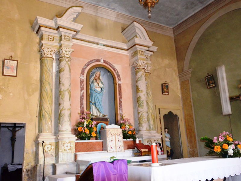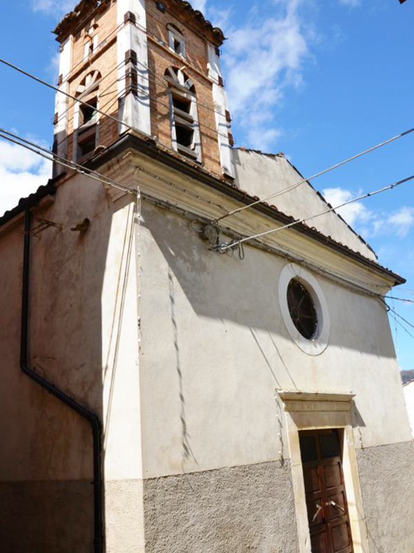 Si tratta di un massiccio edificio risalente al 1891 avente tetto a capanna e facciata semplice. In corrispondenza di questa si erge un tozzo campanile a vela. Il portale in pietra è ad architrave piano con mensola e rappresenta un anacronismo rispetto all’edificio: potrebbe provenire dal vicino Monastero di S.Cassiano da tempo fatiscente. L’interno è a navata unica con piccolo presbiterio sopraelevato di un gradino. Sulla parete di fondo è un altare con colonne rotonde e timpano spezzato in stucco con mensole in travertino; in una nicchia in mezzo all’altare è ospitata la statua della Madonna, un tempo lignea ed oggi in materiale fittile. In una nicchia più in basso, realizzata in tempi più recenti rispetto all’intera struttura, è la statua di S.Anna. Nella chiesa è custodito un Crocefisso ligneo proveniente anch’esso con ogni probabilità dal Monastero di S.Cassiano.