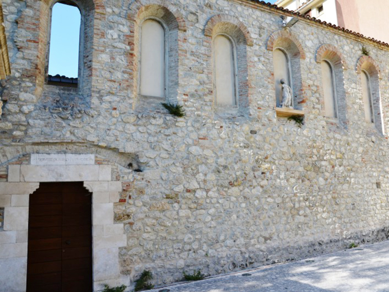 Risalente al XIII secolo si tratta di un'antica struttura religiosa lasciata in abbandono e crollata definitivamente intorno agli anni Sessanta del secolo scorso perché ormai fatiscente. A seguito di un restauro effettuato nel 2008 è oggi possibile ammirare una delle pareti lunghe della chiesa, il bel portale in pietra, alcune statuette e reperti vari costituiti da colonne e frammenti di decori.