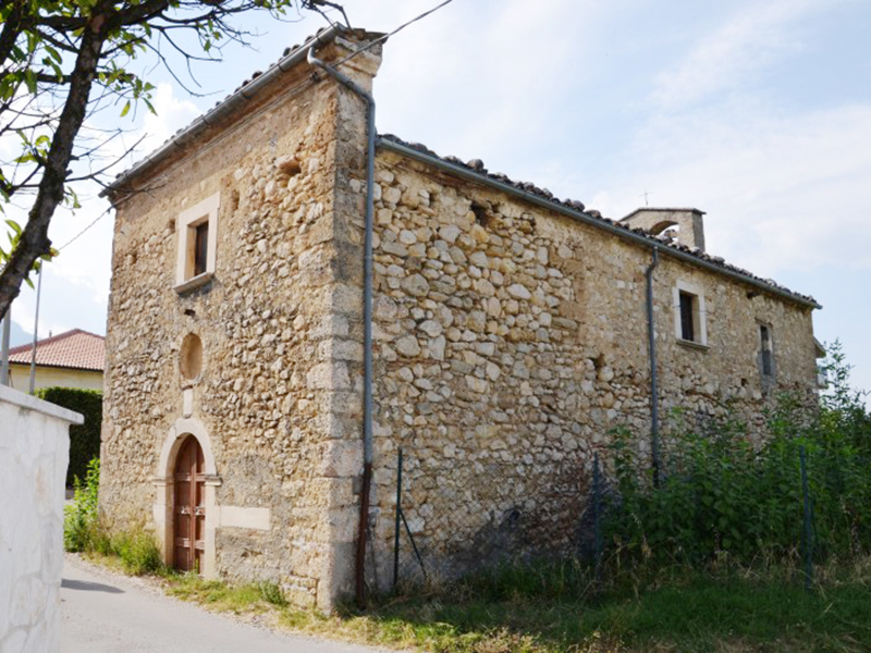 Probabilmente cinquecentesca, è oggi chiusa al culto in quanto alla preesistente fatiscenza si sono aggiunti i danni causati dal terremoto del 6 aprile 2009. La chiesa si presenta con facciata a coronamento orizzontale sulla quale si apre un portale incorniciato in pietra con arco a tutto sesto. Sulla sua chiave d’arco è scolpita la frase “A honore de Deo et de / sua Matre Verbene / Maria et tutti le Santi (Ad honore de Deo et de sua Matre Vergene Maria et tutti le Santi). Subito sopra è una lapide, forse rimessa in opera, che reca la scritta “Sacro sanc / te latera / nensis ec / clesie (Sacro Sanctae Lateranensis ecclesiae). Al di sopra di questa era collocato un rosone in maiolica del Settecento realizzato nella vicina Castelli che raffigurava la Madonna della Pietà, rubato però nel 1964. Alla sinistra del portale c’è un’epigrafe ormai quasi del tutto illeggibile. Dalla parete posteriore si erge un campanile a vela per due campane. L’interno è a navata unica e nella piccola sacrestia sono stati riportati alla luce porzioni di affreschi cinque-seicenteschi.