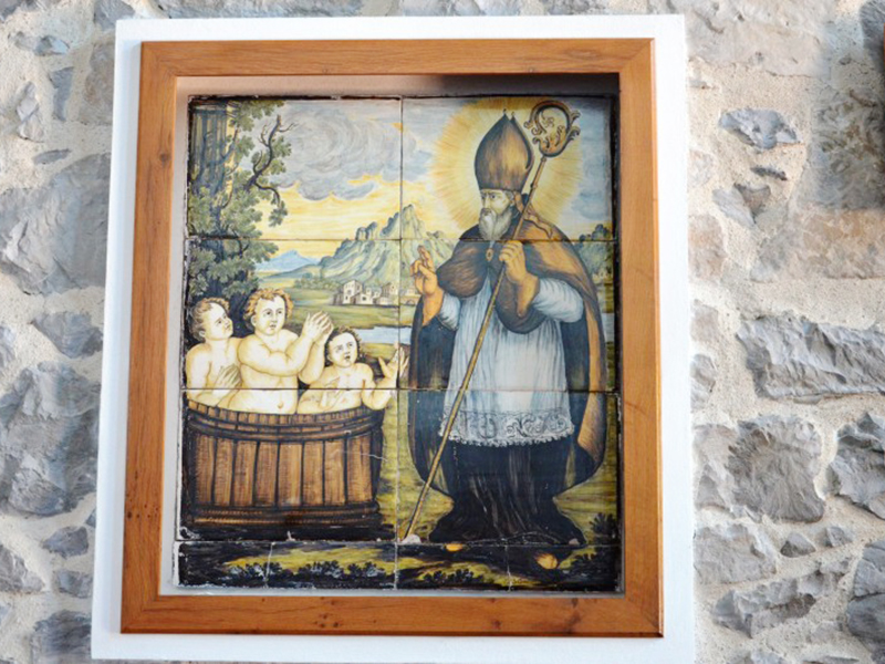 Si tratta di una costruzione per gran parte in pietra con copertura a capanna e corpo anteriore sporgente con arco a tutto sesto in laterizio. Il semplice portale è sovrastato da una lunetta all’interno della quale vi è un mosaico composto da 41 mattonelle rettangolari in maiolica raffiguranti una Madonna con Bambino, S.Gabriele e S.Nicola. Alla parete sinistra è poggiato un piccolo campanile per tre campane. All’interno, ad aula unica, è conservato un dipinto attribuito al ceramista Nicola Cappelletti (1691-1767) raffigurante due miracoli di San Nicola.