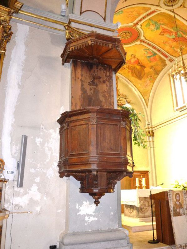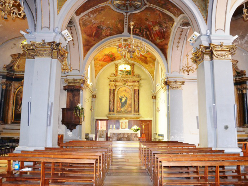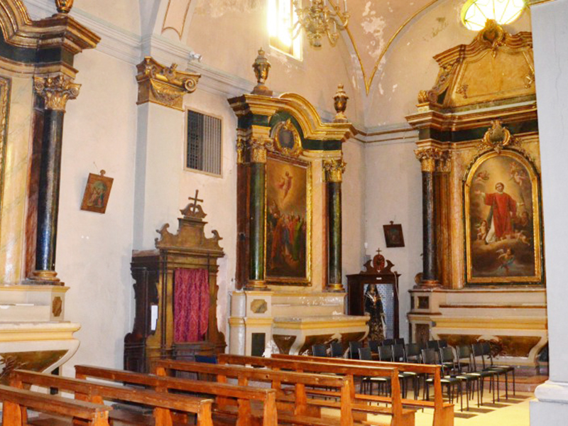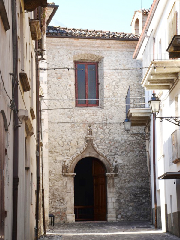 Questa presenta un bel portale in pietra opera dello scultore partenopeo Matteo da Napoli (Matteo Capro) che reca la data 1420 e dà accesso alla navata di destra delle tre in cui è diviso l’interno. Le navate sono divise da archi a tutto sesto che poggiano su pilastri aggraziati da finti capitelli; quella centrale termina con l’altare maggiore collocato nell’abside, in prossimità del quale è un bel pulpito ligneo. Su una parete in prossimità dell’ingresso è incastonata al muro la placca con la Croce delle Indulgenze, concessa da Papa Leone XIII nel 1901. Nella navata di sinistra, dedicata a S.Jacopo, è un battistero rinascimentale con un’epigrafe datata 1529 voluto dal primo marchese della valle Siciliana, lo spagnolo Ferdinando de Alarçon y Mendoza. Nel muro perimetrale esterno sono rimessi in opera frammenti vari di decorazioni scultoree in pietra. Il campanile, a pianta quadrata, è appoggiato alla parete di sinistra della chiesa e presenta una insolita guglia tondeggiante di ispirazione orientale.