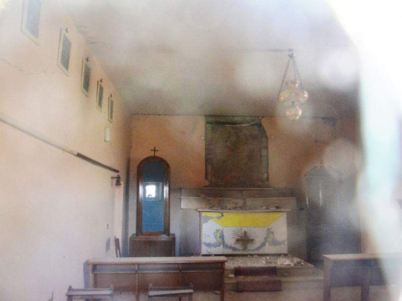 La presenza su una parte di soffitto di mattoni dipinti in rosso per metà secondo la diagonale lunga lascia intendere che il corpo originario dell’edificio risalga al XV secolo, ma quello che oggi vediamo è il frutto di un restauro avvenuto sul finire degli anni Settanta del secolo scorso. L’edificio è con copertura a capanna e l’interno è ad aula unica e soffitto piano. Il portale, incorniciato in laterizio, ha un arco a tutto sesto in mattoni ad ha attualmente un portone in ferro. L’interno, parzialmente visibile da una finestrella, presenta ampie tracce di atti vandalici e depredatori, ma l’esterno non è messo meglio, in quanto sono ben visibili i danni strutturali provocati dal terribile terremoto del 6 aprile 2009 e non ancora riparati.