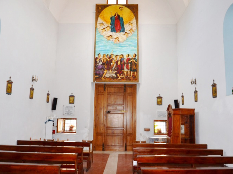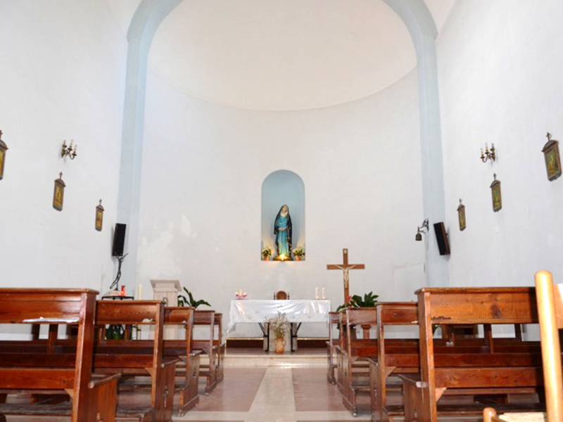 Consacrata nel 1842 e dedicata inizialmente a S.Teresa d'Avila, nei primi anni del Novecento venne utilizzata come chiesa parrocchiale della neo costituita Parrocchia di Martinsicuro, nata dalla riduzione del territorio parrocchiale della vicina Colonnella. L'edificio che oggi vediamo, interamente ricostruito sul vecchio rudere e consacrato nel 1993, è in laterizio e pietrame, con copertura a capanna. Sulla facciata si apre un semplice portale ad architrave piano sormontato da timpano. Nella parte alta è una finestra rettangolare. In corrispondenza della facciata si alza un piccolo campanile a vela per una campana. L'interno è costituito da un'aula unica che termina in un'abside sopraelevato rispetto al resto, in cui è l'intera zona presbiteriale.