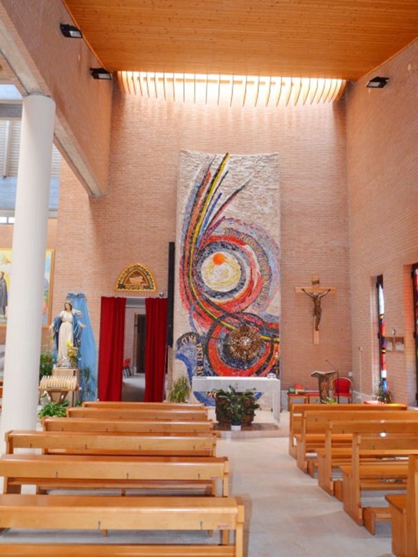 E' moderna e funzionale, preceduta da un'adeguato piazzale e adornata da una torre campanaria avveniristica posizionata in bella vista vicino al portale d'ingresso. L'interno è ampio, arioso ed accogliente, con una grande navata centrale ed una più piccola alla destra di quella centrale, separata da questa da colonne rotonde. La zona presbiteriale è sopraelevata di alcuni gradini dalla navata.