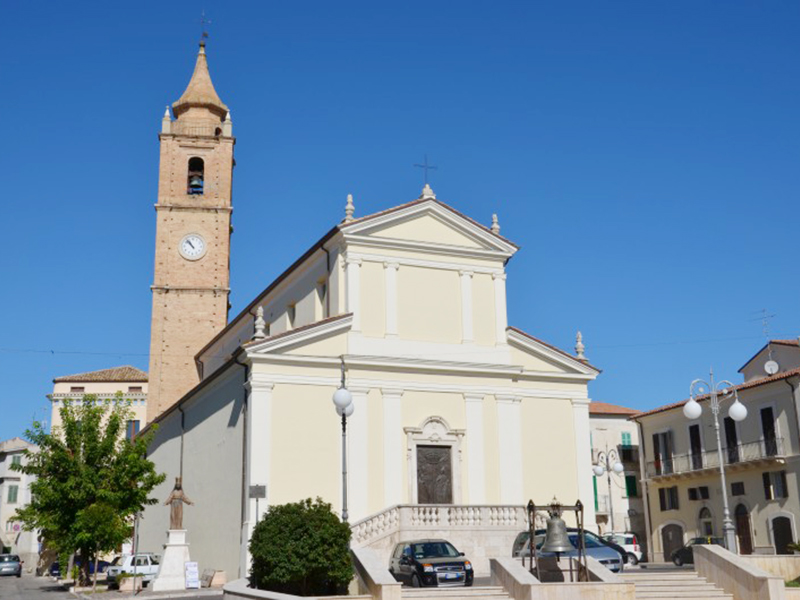 Già esistente nel 1552, ci si presenta oggi così come venne ricostruita nel 1848. E’ di dimensioni più ampie dell’antica chiesa, in quanto sorge nello stesso sito che essa occupava aumentato dell’area limitrofa su cui sorgeva la piccola chiesa dedicata a S.Antonio da Padova, che si data alla seconda metà del Cinquecento. Una significativa opera di restauro è stata compiuta tra il 1920 ed il 1929 e venne riaperta al culto il 17 maggio di quell’anno. La copertura è a capanna nella parte centrale, mentre ai lati è ad inclinazione unica contrapposta. Alla parete posteriore è appoggiata una torre campanaria che termina con una guglia. Sul suo fianco sinistro è stato rimesso in opera un mattone sul quale è la data M 567 DIC I XXX – D – MA (1567 dicatum 31 die mai), che potrebbe essere appartenuto alla chiesetta di S.Antonio da Padova. La facciata risulta slanciata per la presenza di lesene ed è movimentata dal motivo a timpano spezzato. L’interno è a tre navate, di cui quella centrale è sopraelevata ed all’esterno una grande scalinata consente di superare il dislivello.