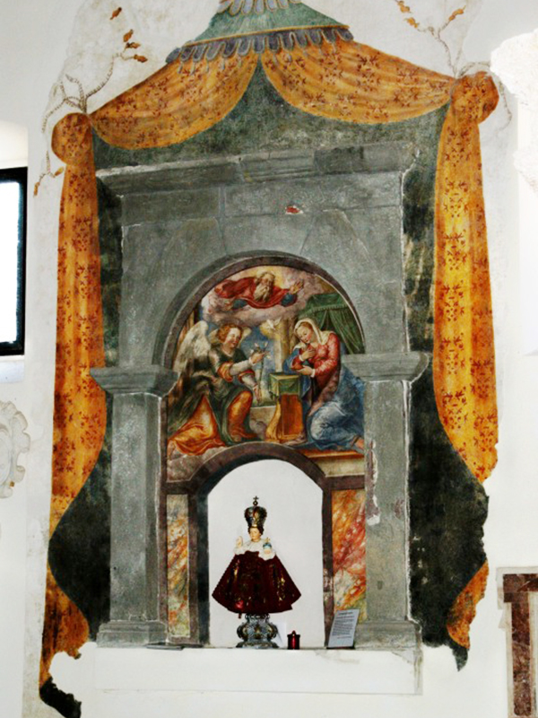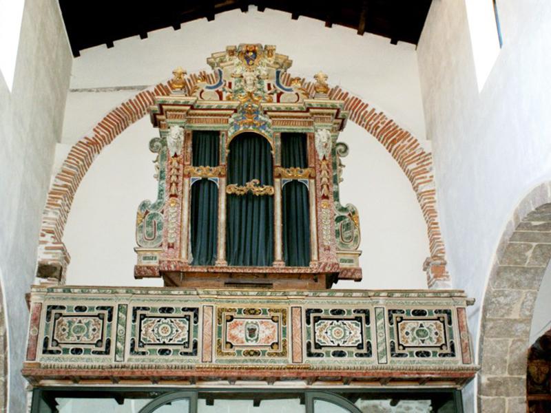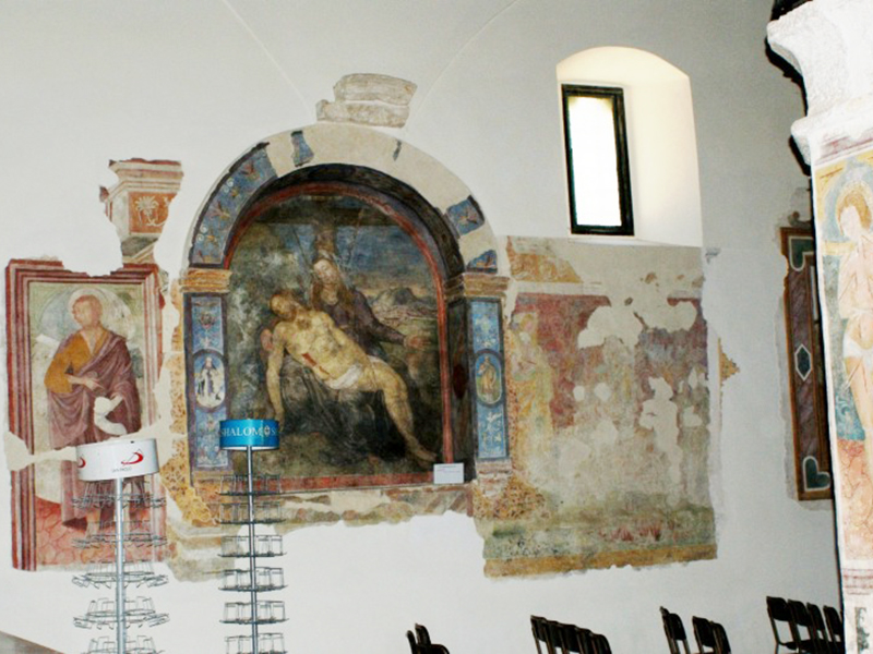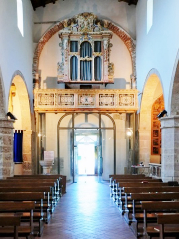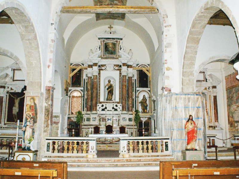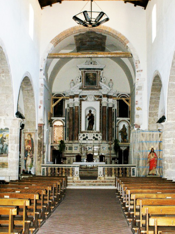 La sua costruzione originaria, voluta dal Conte Odorisio, viene fatta risalire al 1077 e certamente vennero fatti importanti lavori di trasformazione nel Quattrocento, nonché lavori di riparazione e miglioramento verso la metà del Cinquecento e poi ancora verso la metà del Seicento ed all’inizio del Settecento, quest’ultimi in riparazione dei danni causati dal terremoto del 1703. I restauri più recenti risalgono al 1835 ed al 1994. Sulla facciata a coronamento orizzontale si apre un porticato a tre archi, di cui quelli laterali a sesto acuto e quello centrale a tutto sesto. Su un fianco del prospetto si apre la porta di accesso al chiostro ed al convento. Al corpo di fabbrica posteriore si appoggia la torre campanaria a base quadrata. L’interno è costituito da tre navate divise da pilastri ottagonali su cui poggiano archi a tutto sesto. La copertura lignea con capriate a vista è a due falde per la navata centrale e ad una sola falda per quelle laterali. La navata centrale termina con l'altare maggiore ed è separata da questo da una balaustra in marmi bicolori barocchi e da un arcone a tutto sesto. Numerosi ed importanti risultano gli affreschi presenti, di cui alcuni attribuiti ad Andrea De Litio (1420-1495). La Pietà raffigurata su uno degli altari della navata di destra è riproposta su una composizione di quattro formelle di maiolica apposte sul muro della Chiesa di S.Cristina a Lucoli. Interessante è poi un prezioso organo posizionato al di sopra della porta di ingresso: costruito nel 1569 da Giovanni Farina da Guardiagrele, è ritenuto il più antico d’Abruzzo.