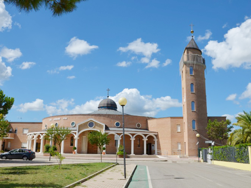 Moderna costruzione in mattoni a pianta semicircolare. Verificatane l'esigenza fin dal 1979 e reperiti i necessari finanziamenti anche regionali, nel 1981 il comune di Pineto acquisì l'area su cui oggi essa sorge ed in breve tempo vide la luce l'imponente edificio. Un piccolo porticato con colonnine unite da archi a tutto sesto precede il portale d'ingresso. Alla sinistra dell'edificio,in tutt'uno con esso, si erge la torre campanaria a pianta quadrata. L'interno, ampio e luminoso, si sviluppa in semicerchi concentrici aventi come centro l'altare maggiore.