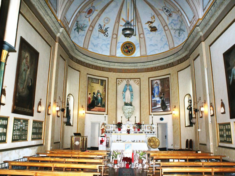 Si trova incastonata nel complesso edilizio dell’odierno Istituto Castorani, un tempo Istituto San Rocco. Nacque insieme all’omonimo Ospizio, poi Ospedale, con il quale rimase indissolubilmente legata fino all’inizio del 1900, quando l’Ospedale si trasferì in un’ala del vecchio Convento dei Frati Cappuccini in fondo al Viale dello Splendore. Dal 1869 la Chiesa è invece legata alle Figlie della Carità, suore dell’Ordine di San Vincenzo de’ Paoli. Oggi la piccola Chiesa, cui si accede dall’interno dell’Istituto Castorani, si presenta ad aula unica che si conclude con un’abside che contiene il presbiterio. Questo, sopraelevato di un gradino, accoglie un bell’altare in marmo al di sopra del quale campeggia una statua della Madonna Immacolata. Sulle pareti laterali due nicchie ospitano le statue di S. Rocco e di San Vincenzo De' Paoli. Una sorprendente volta a cupola completamente affrescata sovrasta l’abside.
