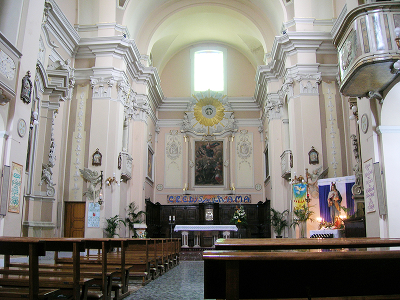 Risalente ai sec. XVI-XVII, al chiesa ha pianta rettangolare e la struttura architettonica imponente. La facciata è suddivisa orizzontalmente in due parti: quella inferiore, più alta, ha un portale con frontone triangolare ed è decorata da lesene semplici, quella superiore contiene una finestra anch'essa suddivisa da lesene, il tutto a mò di frontone. L'interno è a navata unica e nell'abside rettangolare vi è un coro ligneo di noce con riquadri a intagli nella cornice. La chiesa si presenta con sovrastrutture barocche e stucchi di scuola napoletana. All'interno si osservano il battistero di forma poligonale, gli altari, le numerose pale del XVIII-XIX sec., la cappella con l'urna di S. Ciriaca ed il busto argenteo di S. Silvestro.