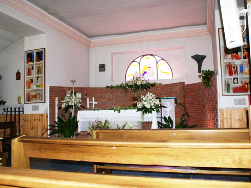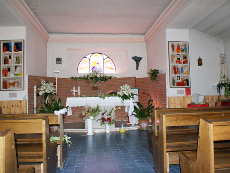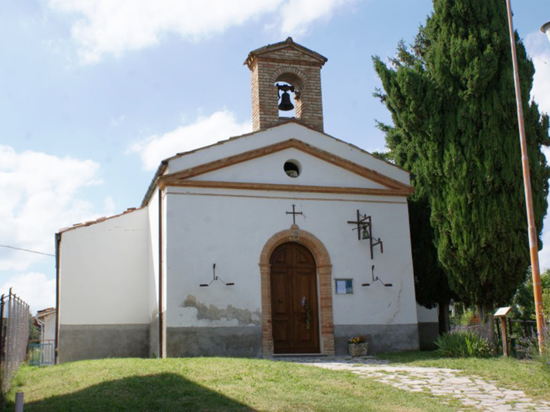 Ha copertura a capanna ed un campanile a vela in facciata che ospita una campana. Sulla parete a destra del semplice portale incorniciato in laterizio, è fissata una piccola campana su cui si legge “Ave Maria Gratia Plena MDCCXCII” (Ave Maria piena di Grazia 1792). L’interno ha un’unica navata, ma una recente ristrutturazione ha aggiunto due piccoli bracci quasi in corrispondenza dell’altare, tali da far diventare la pianta della chiesa a croce latina. All’interno si conservano alcune opere del pittore teramano Marino Melarangelo.