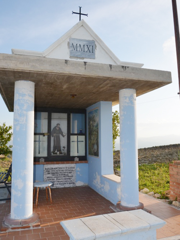 Costruita nel 2011 per la devozione di alcuni residenti, è costituita da una costruzione in cemento armato a protezione di una teca contenente una statua del Santo ed una lapide che lo ricorda e ne invoca la protezione. Sulle pareti laterali due affreschi ricordano due momenti importanti dell’iconografia classica del Santo: S.Francesco che parla al lupo e S. Francesco che viene avvicinato senza paura dagli animali.