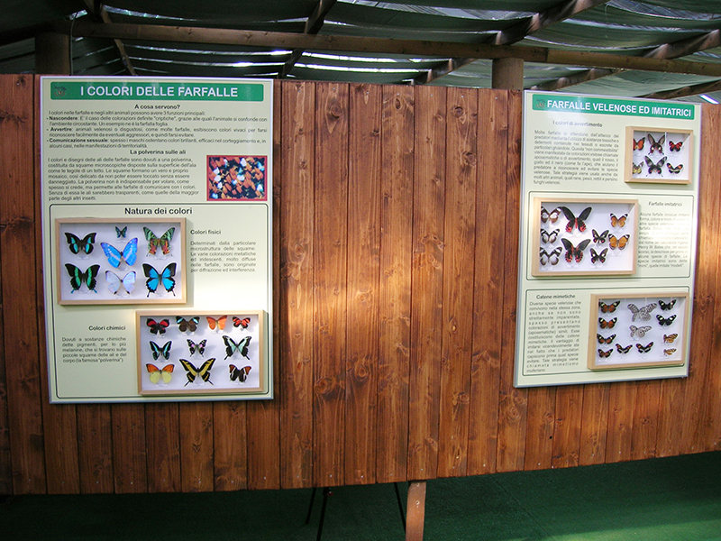 Migliaia di farfalle (africane, americane, indoaustraliane e europee) svolazzano libere intorno a voi in un meraviglioso giardino tropicale di oltre 1000 mq., arricchito da essenze botaniche strettamente associate al ciclo vitale delle farfalle. Il video didattico "Dall'uovo alla Farfalla" mostra i momenti salienti dell'esistenza dei lepidotteri. La mostra didattica consente di osservare da vicino le forme e i colori di centinaia di farfalle imbalsamate suddivise per regioni geografiche e per aree tematiche. È possibile, inoltre, osservare varie specie di uccelli, pesci d'acqua dolce e numerosi animali domestici e da cortile lungo il percorso naturalistico con annessa area pic-nic.
