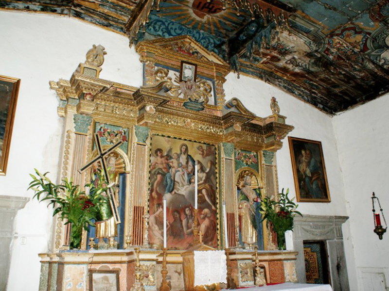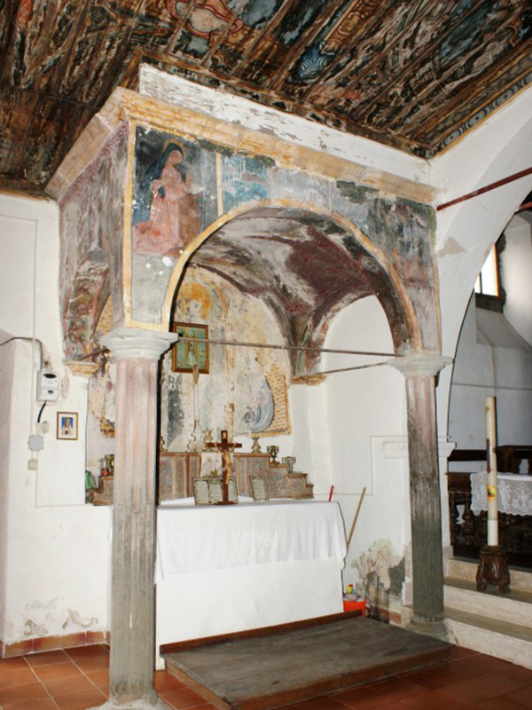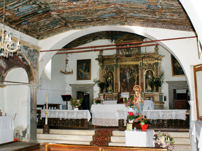L’assetto attuale della chiesa è il frutto di un ampliamento del 1639, di restauri del Settecento e di modifiche ottocentesche, come documentato da numerose incisioni di date presenti in più punti nella chiesa. Questa è con copertura a capanna e facciata a coronamento orizzontale da cui si erge un campanile a vela che sorregge due campane, la più antica delle quale reca la data 1617. All’interno, l’unica navata è divisa in tre sezioni da due grandi archi a tutto sesto ed è sovrastata da un soffitto ligneo dipinto risalente al Settecento in cattivo stato di conservazione. Nella parte centrale della chiesa trova posto un ciborio in pietra, forse cinquecentesco, con affreschi anch’essi molto rovinati dal tempo. Una delle tre sezioni, separata dal resto da una balaustra lignea, è destinata a zona presbiteriale ed in essa trova posto l’altare maggiore barocco, datato 1741, in legno dipinto dorato diviso in tre parti. Nelle due nicchie laterali sono poste le statue di S.Andrea e S.Pietro, mentre nella parte centrale c’è un dipinto raffigurante la Madonna delle Anime Purganti; nel timpano sovrastante è raffigurato il Padre Eterno. In una delle colonne che sorreggono uno degli arconi è incastonata, sovrastata da una piccola maschera a rilievo, la placca con la Croce delle Indulgenze che Papa Leone XIII concesse nel 1901.