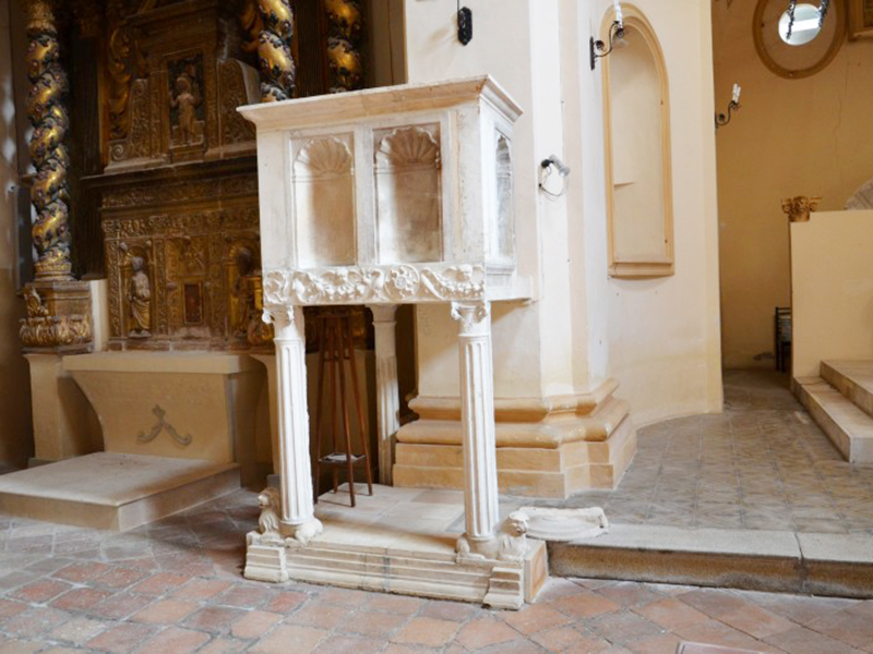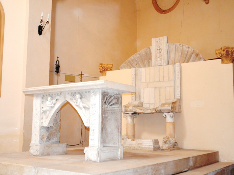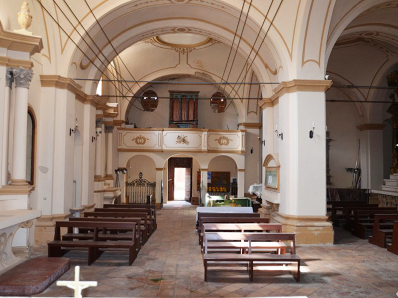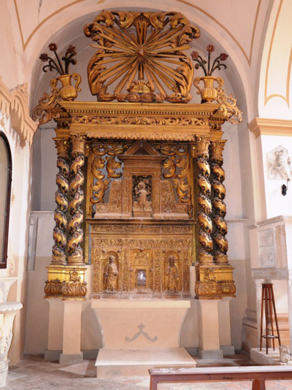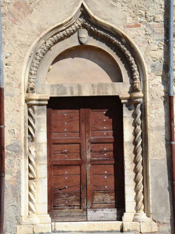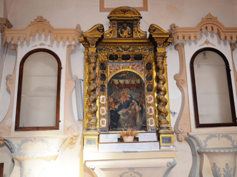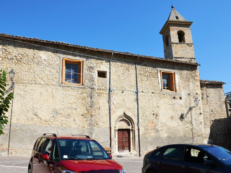 La chiesa, consacrata nel 1438, è realizzata in pietre e laterizio. Uno dei due portali è sul lato corto ed è ad architrave piano sormontato da una lunetta. Nei punti di attacco dell’architrave con la lunetta sono rimesse in opera due testine scultoree di epoca precedente. Sulla chiave d’arco della lunetta è lo stemma degli Orsini, feudatari della Valle Siciliana all’epoca della consacrazione della chiesa. L’altro portale è sul lato lungo della chiesa ed è di chiara scuola veneta. Anch’esso ad architrave piano sormontato da lunetta, ha colonne tortili, decori con motivi floreali e curve rinascimentali che ne ingentiliscono l’aspetto. Sulla chiave d’arco della lunetta è lo stemma di un’altra famiglia gentilizia, mentre sui capitelli che rastremano le colonnine sono due statuette corrose dal tempo che raffigurano la Vergine Maria e l’Arcangelo Gabriele. Alla parete posteriore è poggiata una torre campanaria a base quadrangolare. L’interno è suddiviso in due navate, di cui la principale è più lunga e termina con un’abside, all’interno della quale trova posto un altare ligneo rinascimentale datato 1587; l’altra navata, più corta, sarebbe stata aggiunta in una ristrutturazione del XVI secolo. In prossimità dell'ingresso è incastonata al muro la placca con la Croce delle Indulgenze che Papa Leone XIII concesse nel 1901.