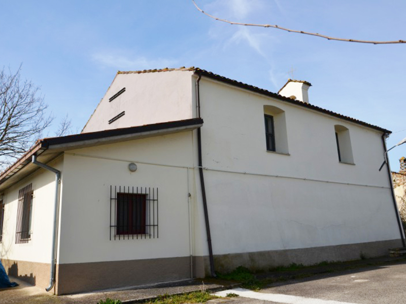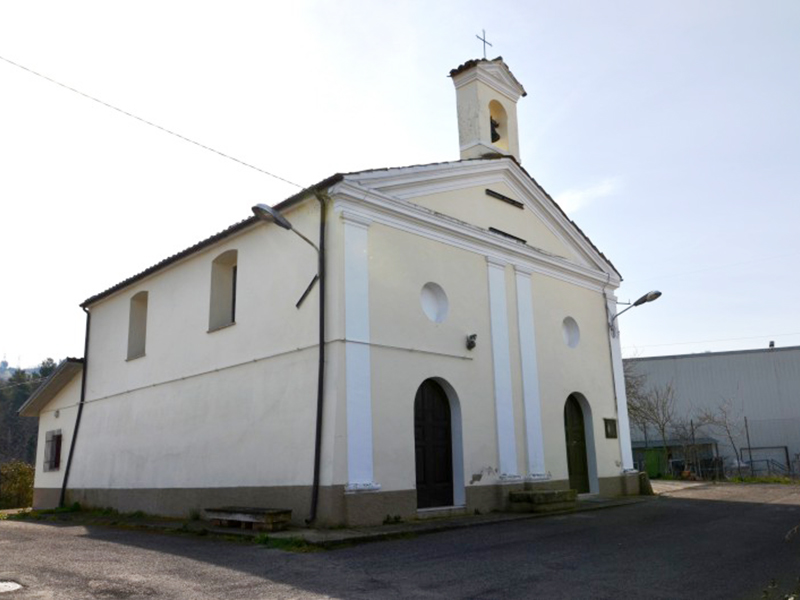 Si trova immersa in una zona a sviluppo industriale, a vista di nuovi opifici e di antichi terreni agricoli ancor oggi coltivati. La struttura ha muri a scarpa e copertura a capanna; sulla facciata si aprono due portali con archi a tutto sesto che lasciano presumere all'interno una doppia navata. Dal culmine del tetto si alza un piccolo campanile a vela che ospita una campana. Sulle pareti lunghe si aprono in alto grandi finestre rettangolari con evidenti strombature ed alla parete posteriore è poggiato un piccolo edificio, evidentemente successivo alla costruzione principale, che ospita probabilmente un'ampia sacrestia.
