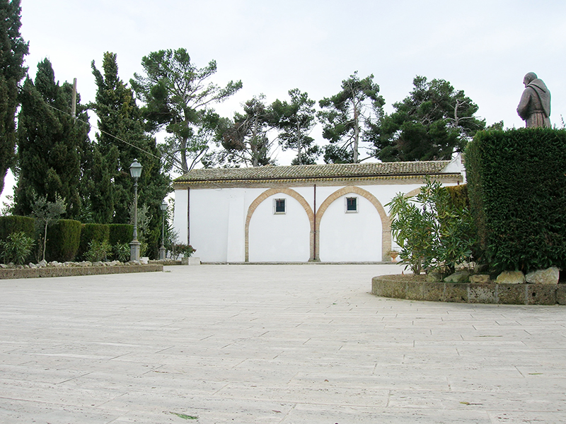 Dell'antico complesso conventuale dedicato a San Nicola, forse dal poverello di Assisi in persona, rimane solo la navata centrale della chiesa. Se costruita su tempio romano non vi sono testimonianze certe. Lo stile gotigo che si desume dagli archi colloca la costruzione, giunta sino a noi, nel periodo medioevale. Dei resti degli affreschi conservati nella chiesa si è scritto e si è supposto di collegamenti e similitudini con opere di tutta Italia. Certo è che il tempo della loro esecuzione è compreso nel periodo medioevale e che gli artisti si muovevano raggiungendo il luogo dove necessitava il loro talento. Le correnti artistico-culturali siano esse bizantine romaniche o medioevali, hanno poi caratterizzato le loro opere. L'iconografia è attinta dalle immagini sacre del Salvatore, della Madonna con Bambino e dai Santi protettori. Tracce dei pochi resti in pietra delle costruzioni precedenti, si notano negli elementi inglobati nei successivi interventi architettonici in laterizio come le decorazione degli archi, oggi tamponati per la perdita delle navatelle adiacenti.