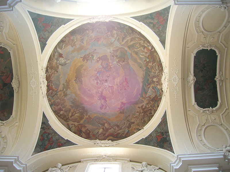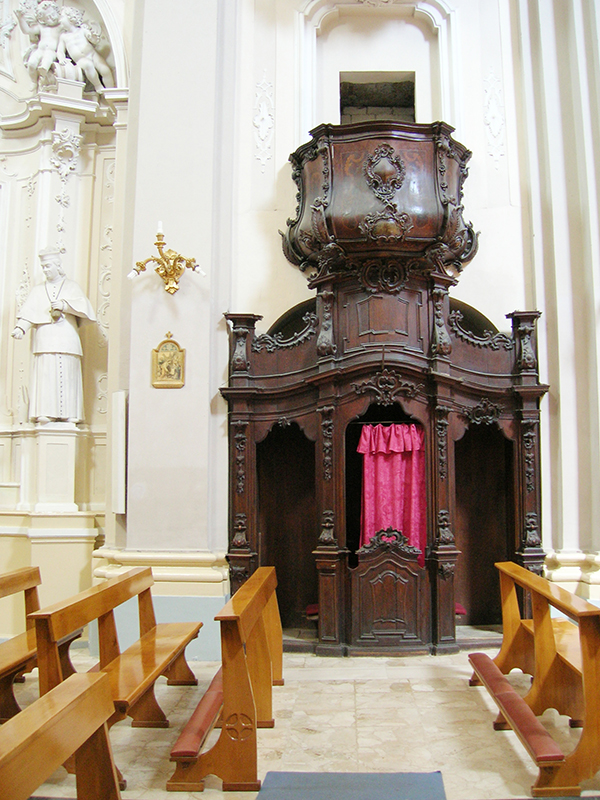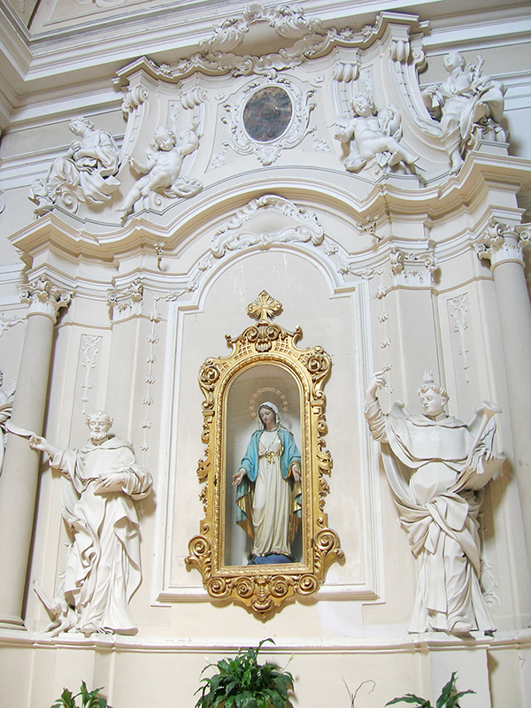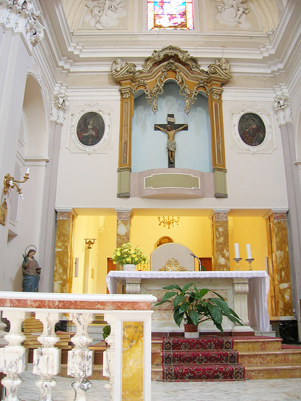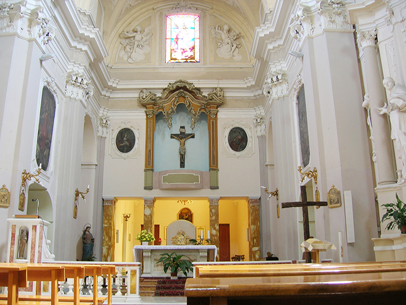 Edificata dai Frati Minori nel 1291 fu dedicata a San Camillo nel 1450. Affreschi e stucchi sono di un certo interesse, come anche i confessionali e il pulpito, in pregiato legno intagliato. La chiesa è ad aula unica; sul lato destro troviamo l'altare dedicato a Sant'Antonio di Padova con un bel dipinto, sul lato sinistro l'altare della Madonna dei Sette Dolori. Lo spazio centrale è definito da un vano cupolato; sotto la cupola sono posti gli altari delle congragazioni del Santissimo Rosario e di San Giacomo. La chiesa trova la sua ricchezza artistica anche negli stucchi della volta e degli altari, in stile barocco. La facciata è l'unica ad avere una composizione movimentata, ottenuta con l'affustellarsi delle paraste laterali su due ordini, con timpano curvo in cui si inserisce l'elegante portale in pietra scolpita, a timpano spezzato con nicchia. In questa chiesa si conservano le reliquie del Beato Benedetto Idropico, francescano.