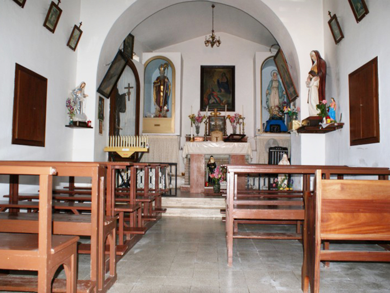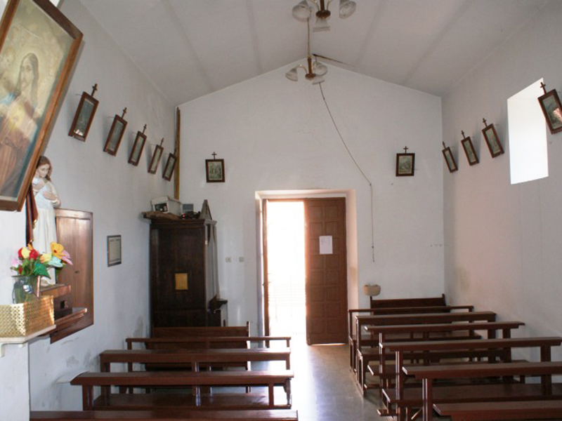 La sua parte più antica è incastonata nella roccia ed il resto della struttura presenta ampie tracce di un moderno restauro. La copertura è a capanna ed un piccolo campanile a vela in facciata sorregge una campana. Il semplice portale è sormontato da una lunetta al cui interno si vede quel che resta di un piccolo affresco che raffigura una Madonna con Bambino. All’interno, la piccola aula è divisa da un grande arco a tutto sesto dalla zona presbiteriale, rialzata di due gradini rispetto al resto. Alle pareti, teche e mensole ospitano statue, tra cui una raffigurante S.Franco di Assergi, e simboli devozionali.