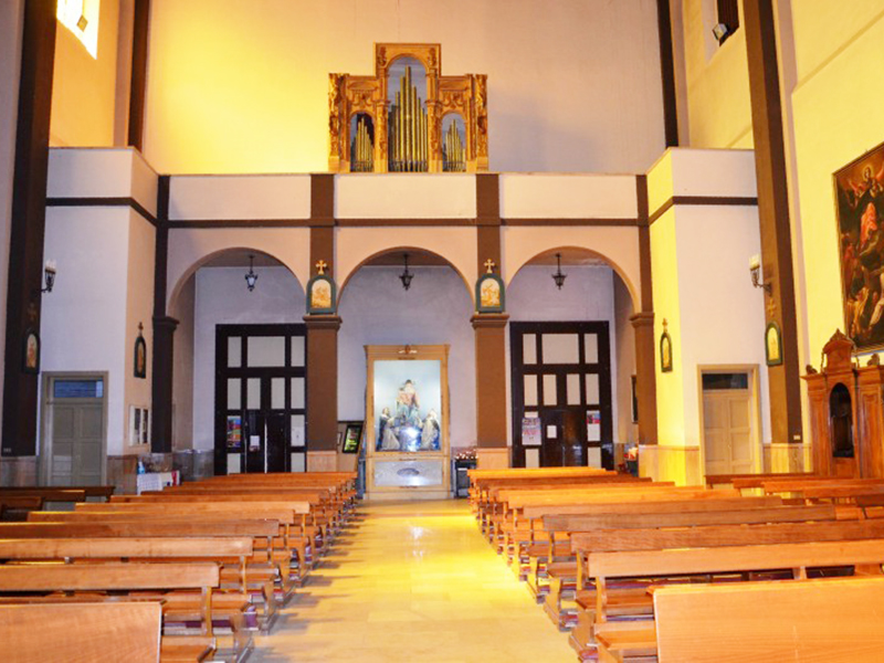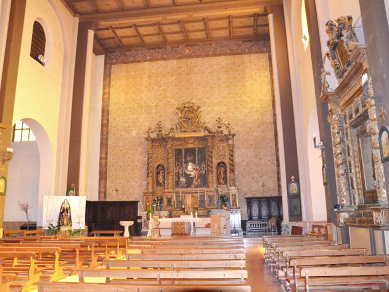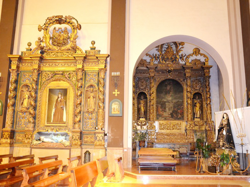 Dalla facciata si capisce che ha due corpi di fabbrica distinti di cui il più antico, quello di sinistra, venne realizzato nel 1527 da Vittoria Camponeschi, poi ampliato nel 1549 da Giovanni Carafa. E’ a coronamento orizzontale ed il portale è sormontato da una lunetta, all’interno della quale si trovano lo stemma di Montorio, un fregio a palmette sulla cornice esterna ed un bassorilievo raffigurante la scena dell’Annunciazione. L’architrave piano reca al centro il monogramma di S.Bernardino da Siena. Il corpo di fabbrica di sinistra è invece il frutto dell’ampliamento realizzato nel 1673; la facciata ha un portale ad architrave piano con sovrastante timpano spezzato al centro del quale campeggia il simbolo di Montorio con la data della realizzazione, sormontato da una croce. Sulla parte sinistra due campane sono ospitate da un campanile con orologio, anch’esso probabilmente risalente al Seicento. L’interno, nonostante le due diverse strutture, si presenta oggi come una navata unica rettangolare con alla sinistra una cappella. Nella chiesa sono quattro altari barocchi monumentali, in legno dipinto e dorato, realizzati nel corso del XVII secolo. L’altare della Resurrezione, nella cappella di sinistra, conserva cinque busti-reliquiari di sante. Nella cantoria sopra la porta d’ingresso si trova un organo napoletano impiantato nel 1636, che risulterebbe l’organo più antico finora conosciuto in Abruzzo. Sempre al XVII secolo risalirebbe l’acquasantiera nei pressi dell’altare.