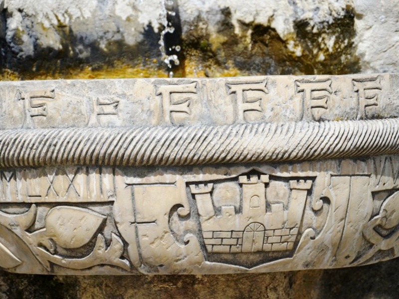 Sul bordo esterno di quel bacino era incisa la scritta “A.D. 1335 aedificata fuit haec ecclesia. Hoc op. ff. A.D. 1569”. Sulla parte più bassa era lo stemma triturrito di Fano Adriano con una F ed una T ai suoi lati. Con ogni probabilità il bacino era dunque l’acquasantiera o il fonte battesimale di una antica chiesa costruita nel 1335 che, dopo che la chiesa cessò di esistere, venne riutilizzato nella fonte in questione.