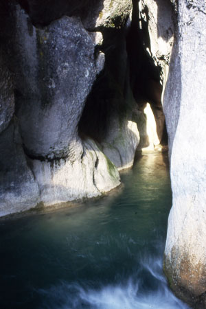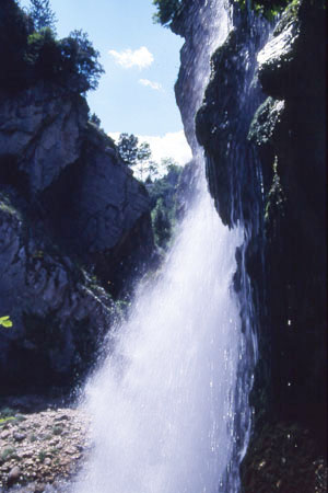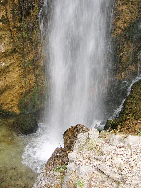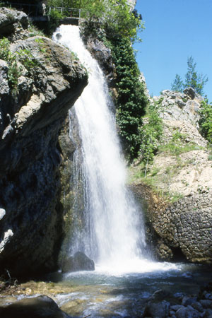 Incantevole è una enorme grotta, chiamata Bocca dell'Inferno, dove il Tavo penetra turbinosamente per poi sfociare in un'altra valle ove forma una spettacolare cascata alta 28 metri: la Cascata del Vitello d'Oro, sorgente tra le più importanti del versante sud del gruppo del Gran Sasso. Da notare il contrasto tra versanti rocciosi con scarsa vegetazione o addirittura spogli e la conca che appare verdeggiante di alberi cresciutivi spontaneamente.