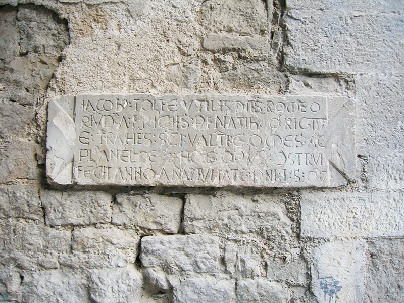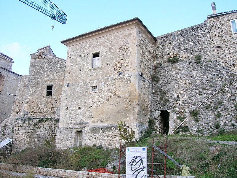 L’edificio è caratterizzato da una facciata con loggia sul cui androne si può leggere un’iscrizione del 1507 che attesta la data di ricostruzione del castello ad opera di Penatibus De Tolfa. Entrando nell’atrio del palazzo si possono osservare ancora interessanti particolari architettonici: il portale, la scala esterna e la loggia resi particolarmente pittorici dalla pietra a vista che ne copre le pareti. Sulla destra dell’androne è ancora visibile un portale decorato con motivi floreali a rilievo; quasi impercettibili sono, al contrario, eleganti cornici a dentelli e raffinate modanature che corrono sotto il cornicione e decorano le bucature delle finestre.