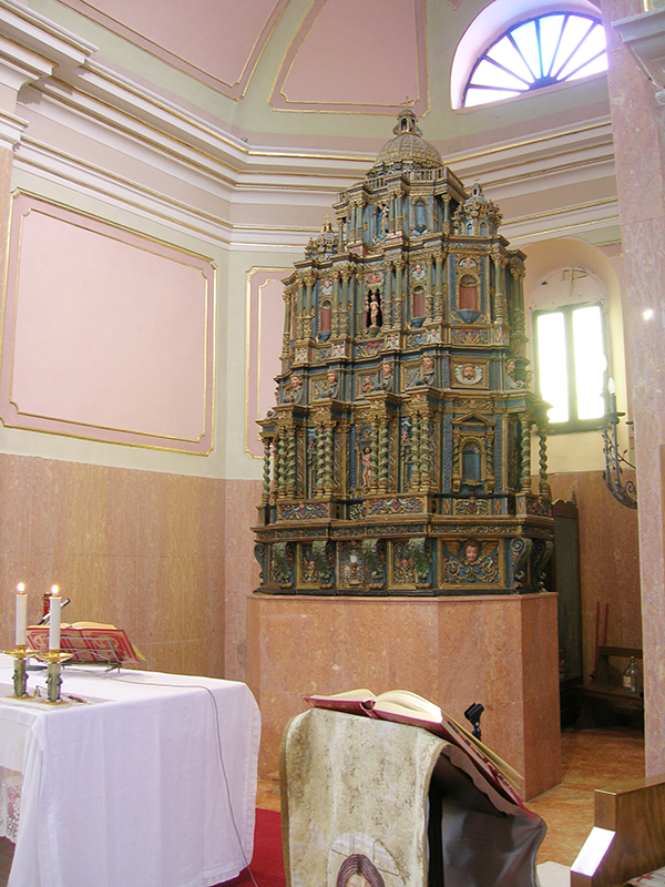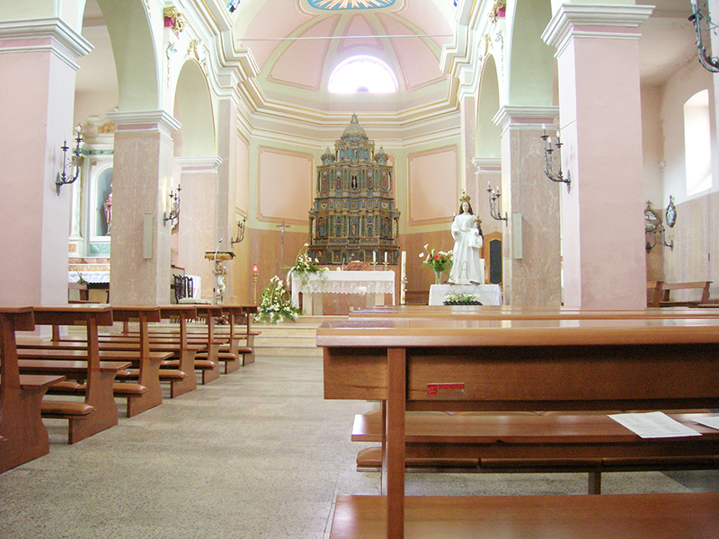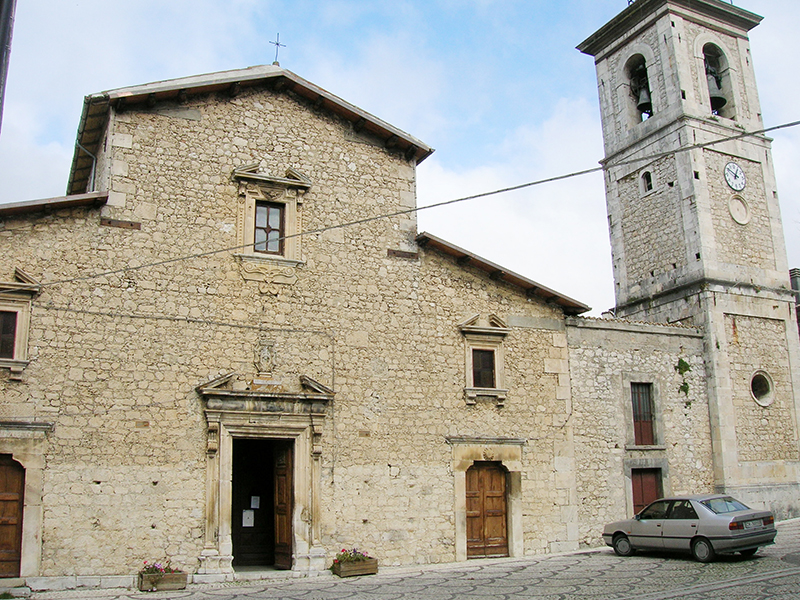 Di antica fondazione, si trova nella parte alta dell'abitato, nell'omonima piazza, con il campanile sulla destra e tre ingressi che immettono nelle rispettive tre navate interne, suddivise da pilastri quadrangolari. Uno dei due portali laterali reca incisa la data del 1516. Nel corso degli anni gli interni sono stati modificati ripetutamente e di recente sottoposti a lavori di restauro che ne hanno comunque mantenuto il fascino. Nella navata centrale è possibile ammirare il monumentale tabernacolo in legno scolpito a mano, di incerte origini, opera di artisti cappuccini, i Frati Marangoni. La costruzione, alta oltre quattro metri, con ricca decorazione e preziosi elementi rappresentati da colonne elicoidali, statuine e tempietti alla sommità, rappresenta un punto di riferimento della vita ascetica e contemplativa che in passato ha caratterizzato queste zone.