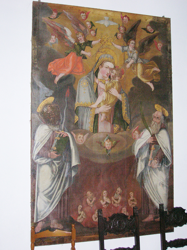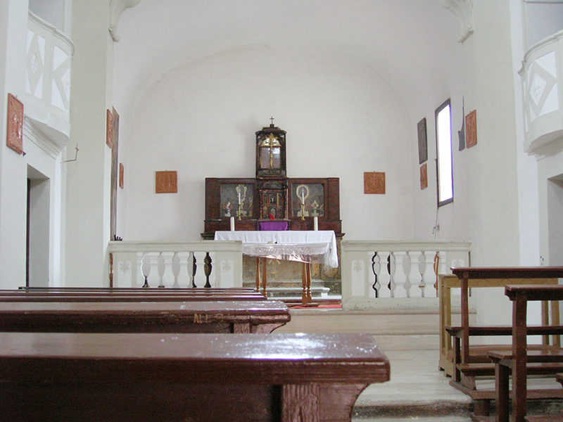 La chiesa di Sant'Antonio Abate (XVII secolo) presenta un'elegante facciata barocca con portale decorato da rilievi realizzati in pietra locale. Decisamente interessante è la mostra del portale della facciata, del 1715, realizzata in pietra locale, con cornice modanata; sull'architrave, dove troneggia una testa d'angelo fra festoni di fiori, corre un'iscrizione latina di carattere sacro recante la seguente scritta: P. Antonii Abbatis Dicatum Glorus AMDCCXV. Sul fianco sinistro della chiesa si eleva un piccolo campanile a vela con due fornici a frontone triangolare. Internamente l'impianto a croce greca, dunque centico, si articola in una sola navata con transetto e cappelle laterali.