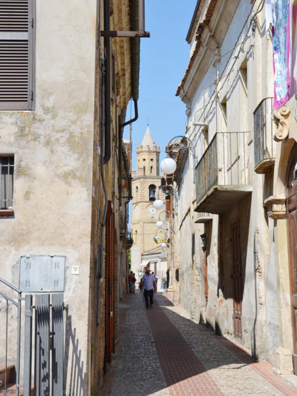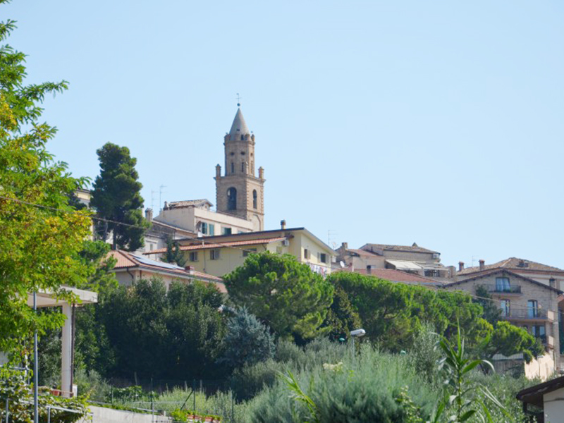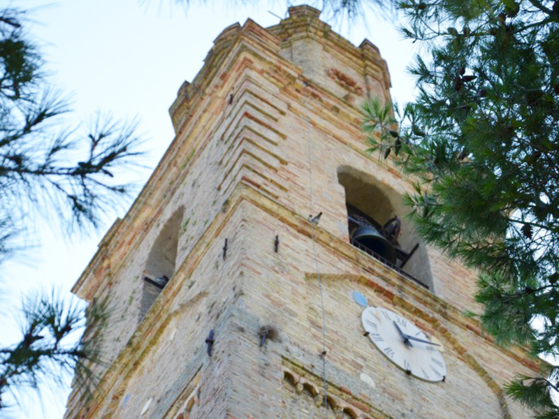 Di questa, demolita nel 1876, restano solo alcune tracce di muratura. La costruzione, posta nella piazza principale, risale probabilmente alla seconda metà del Quattrocento e, tra le varie vicende che ha subìto, in passato è stata per lungo tempo senza cuspide, dopo che questa venne abbattuta da un fulmine nel 1583 durante un furioso temporale. E’ a pianta quadrata di m.5,60 per lato, è alta circa 40 metri e la sua cuspide, restaurata nel 1962, termina con un globo in rame del diametro di cm.50 sormontato da una croce. Ospita tre campane, la più grande delle quali venne rifusa nel 1946 dai F.lli Pasqualini di Fermo.