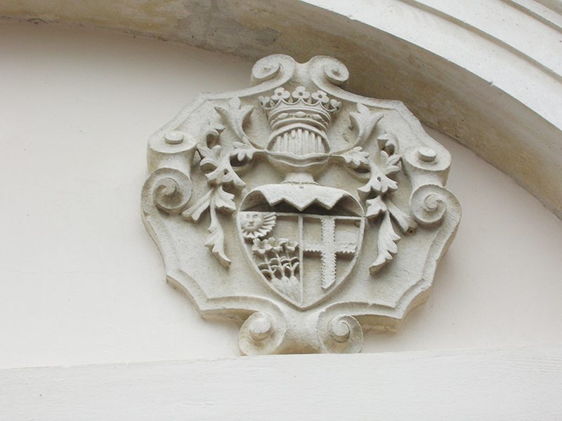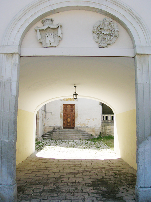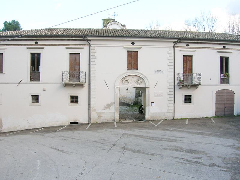 Si tratta di un organismo palazziato di piccole dimensioni databile al XVIII secolo. La facciata a due ordini mostra un corpo centrale leggermente aggettante, nel quale si apre il portale d'ingresso a sesto ribassato. Nella lunetta dell'arco sono apposti due stemmi araldici sicuramente appartenuti ai proprietari o a quelle famiglie che furono beneficiarie dell'opera. Sulle due ali che affiancano il corpo centrale, si aprono sei finestre dalla classica cornice tardo settecentesca. Nell'ordine inferiore si trovano finestre quadrotte, incorniciate in modo semplice, la cui sequenza รจ interrotta, sul lato destro, da un portale ottocentes