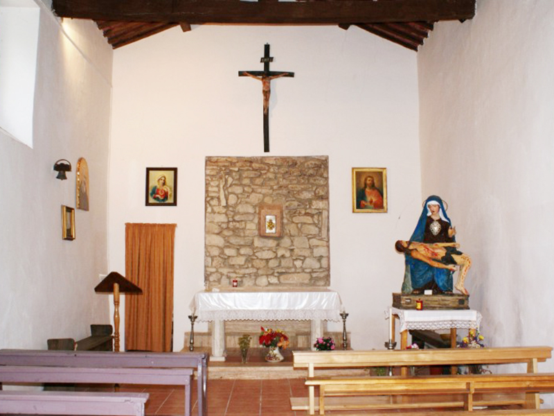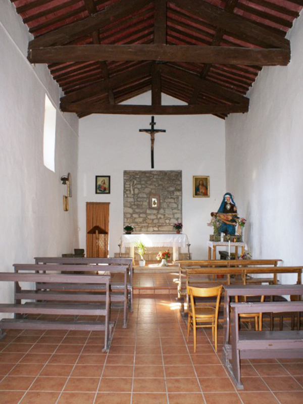 A facciata quadrata con tetto a capanna sorretto da capriate in legno; l’interno è ad aula unica priva di abside, con l’altare leggermente rialzato. Un piccolo campanile è incastonato nella facciata principale e reca una sola campana.