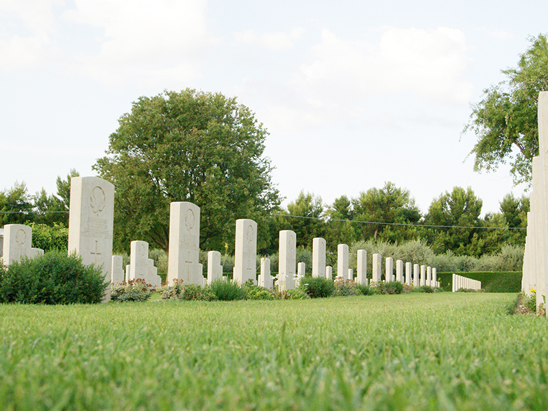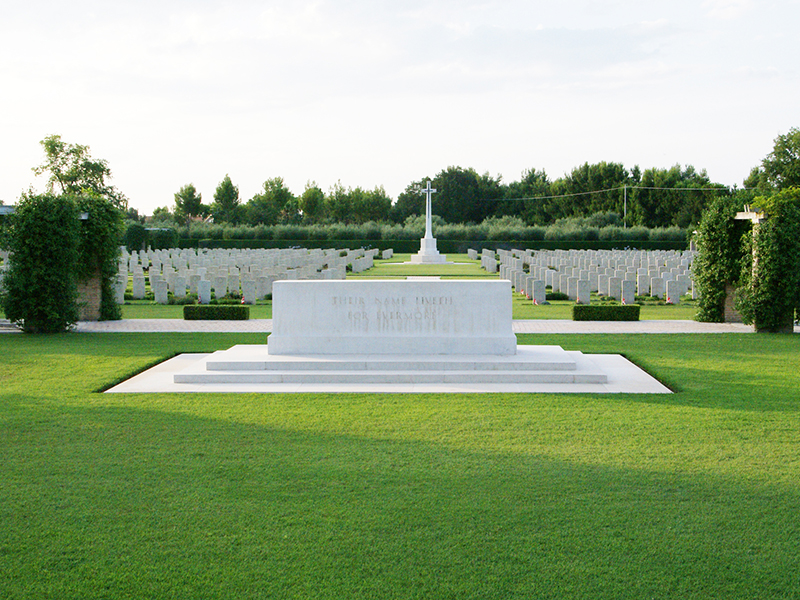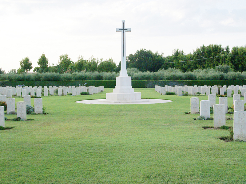 In Abruzzo, le battaglie più tragiche contro l'esercito tedesco furono combattute lungo la linea difensiva Gustav, tra le rive del Sangro e del Moro. Nel Dicembre del 1943 le vittime della sanguinosa battaglia furono giovani soldati del Canada, USA, Regno Unito, India, Sud Africa, Australia, Nuova Zelanda e i loro resti hanno trovato l'eterno riposo su queste colline. Il Cimitero di Guerra di Ortona fu fondato dal Commonwealth War Graves Commission per commemorare i caduti che erano lontano dai loro paesi e dalle loro case.