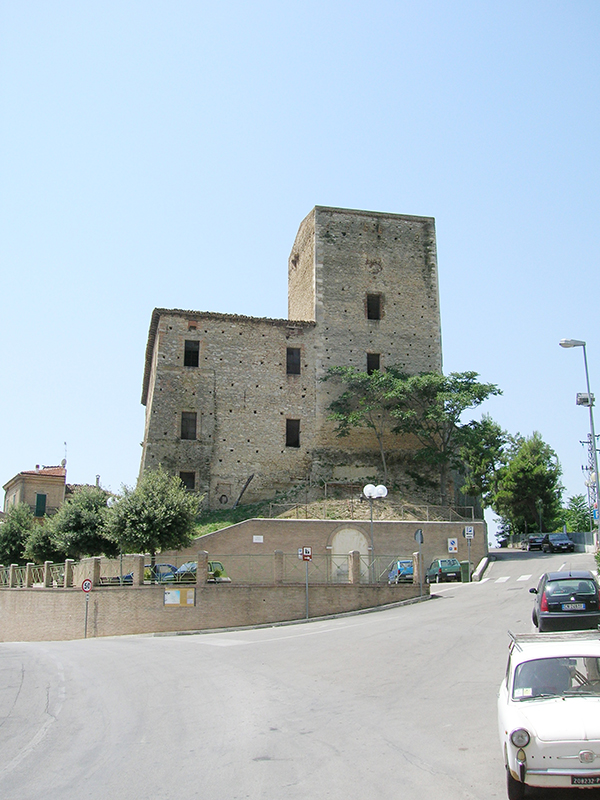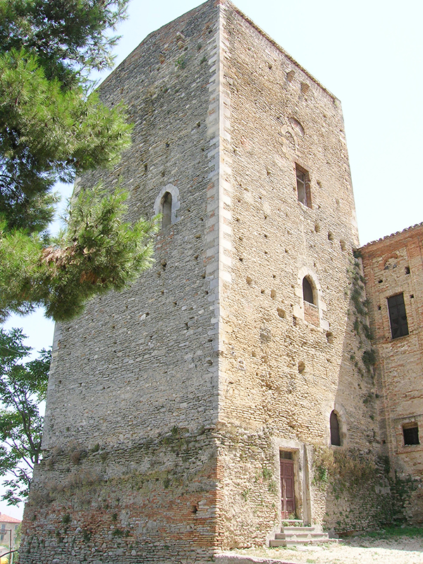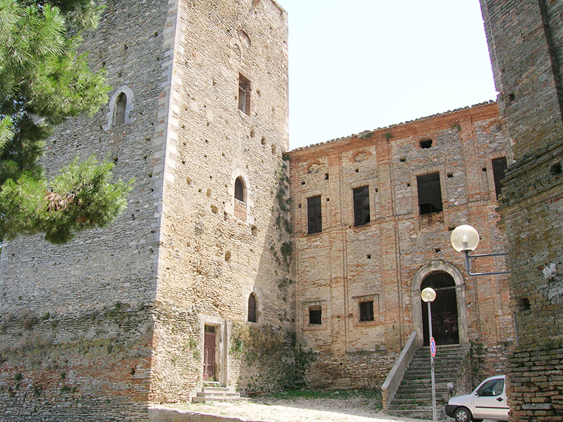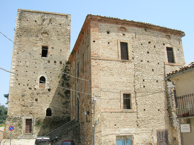 L'imponente Castello di Rosciano si compone di un torrione quadrangolare risalente alla fine del secolo XI, costruito dai Normanni all'epoca della prima invasione del comitato di Penne, e di un corpo di fabbrica laterale, trasformato nel Rinascimento in Palazzo Baronale. La torre si eleva su un basamento di epoca più risalente, dal quale si scorgono ancora murature del periodo romano. Una leggenda vuole che la Torre di Rosciano sia stata edificata dai Giganti Paladini all'epoca della prima crociata e, pertanto, nella tradizione orale essa è indicata comunemente come "la Torre dei Paladini". Il Palazzo Baronale, completato nel 1600, presenta un piano rialzato, nel quale era collocato l'antico Corpo di Guardia, con le finestrelle protette da pesanti grate, ed il piano nobile, al quale si accede per mezzo di una vasta scalinata interna, ha ampie finestre separate da sottili paraste ed un sottotetto fornito di semplici loculi. La gravità dell'edificio tradisce la sua origine militare, poiché spesso era adibito a ricovero delle truppe dei vari eserciti che attraversavano la Valle del Pescara.