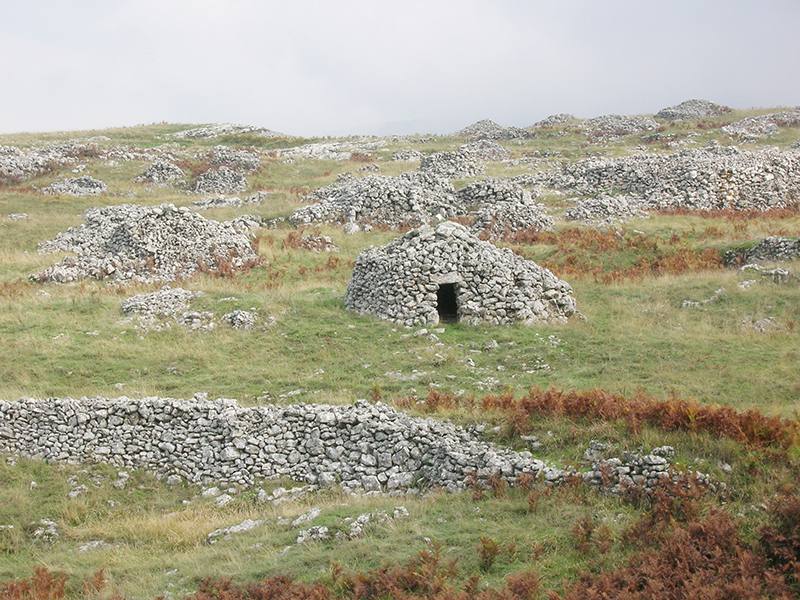 Il complesso agro-pastorale Colle Civita si appoggia ad una parete rocciosa mimetizzandosi perfettamente fra le rocce: solo i buchi neri degli ingressi delle capanne e dei corridoi coperti rivelano la sua presenza. Il nome del colle su cui si trova e la sua architettura, di origine così antica, farebbero supporre una remota data di costruzione se non si conoscessero i costruttori e l'anno in cui il complesso fu realizzato. Il complesso fu infatti costruito nel 1940 da Parete Giuseppe di Roccamorice (PE), per conto di Palumbo Agostino. Il Parete, con una squadra di una quindicina di operai, portò a termine la costruzione in circa 40 giorni e fu pagato con "pezze" di formaggio. Ognuna delle capanne assume una funzione ben precisa nell'economia del complesso: mungitoio, deposito attrezzi, dormitorio.