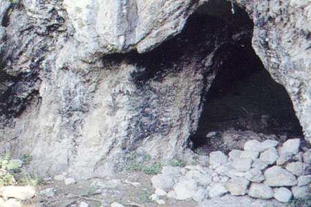 La grotta di S. Leopardo si apre in un angolo di un piccolo pianoro. Nell'angolo opposto troviamo i resti di una imponente costruzione che presenta alla base delle mura megalitiche e, superiormente, un gradone ad "opus incertum". Il tutto potrebbe risalire al primo secolo a.C. ed appartenere ad un "columbarium". I numerosi ritrovamenti di pietre scolpite con simboli fallici e strumenti edili potrebbero far pensare ad una sovrapposizione dei "collegia" corporativi, o anche templare. Su tali resti fu edificata nel medioevo una chiesetta di cui si ha notizia giĆ nell'anno 816.