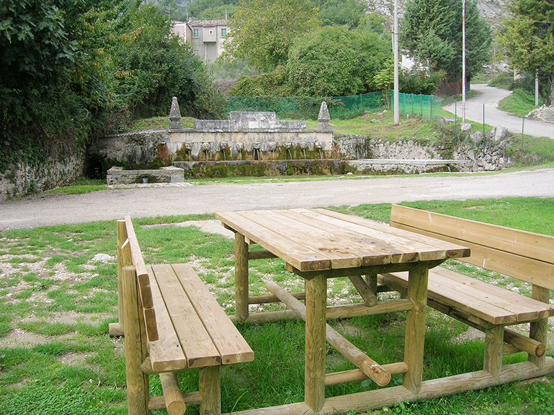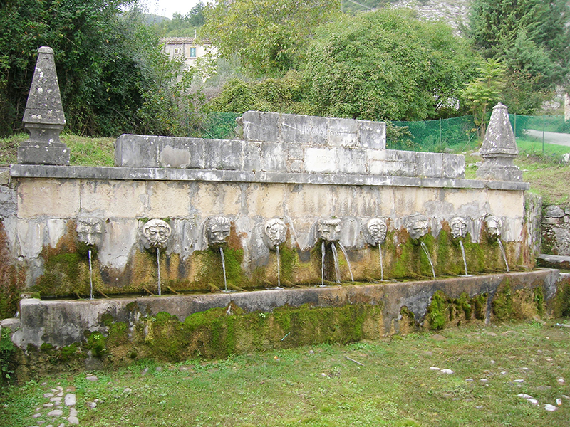 Di particolare rilievo è la fonte, o fonte romana, che esiste nell'ambito della località già chiamata Moro. La parola "romano" è una delle forme in cui si presentano in Abruzzo i derivati dal germanico "hari-mann", latinizzato in "harimannus", detentore dell'Arimannia, ovvero terre fiscali concesse ad uomo libero. Nulla a che vedere, dunque, con i romani nel caso di questa fonte, ma più precisamente con la presenza longobarda che, come si vede, alle pendici de La Queglia trovò motivi concreti di affermazione, tra i quali l'esistenza di una copiosa sorgente, che ancora oggi i Naturali chiamano l'acqua di Santa Lucia.