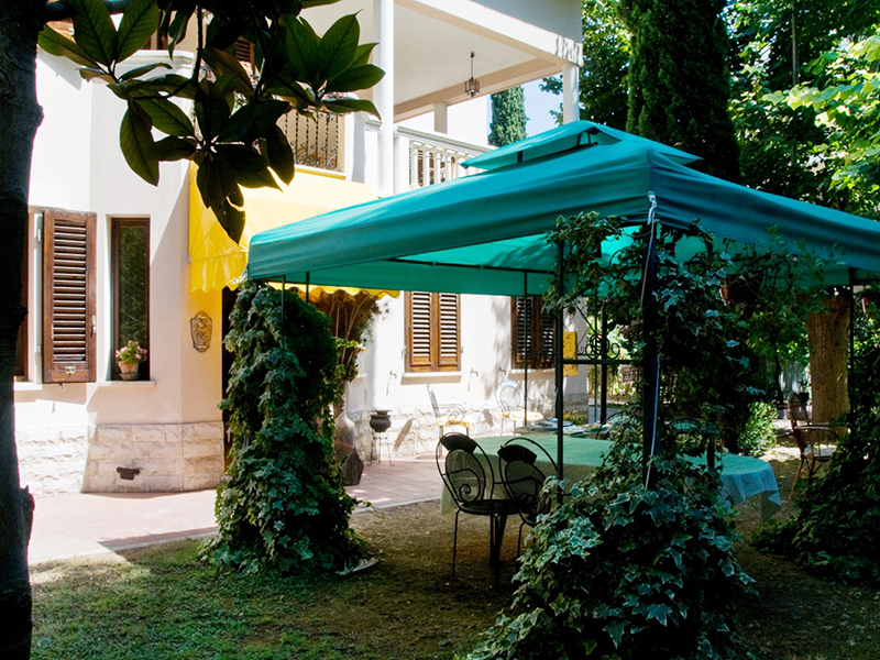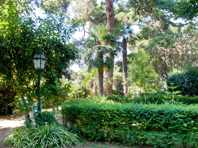 Al primo piano della villa ci sono due grandi camere, sia matrimoniale e sia doppia, ciascuna con il suo bagno. Entrambe le camere hanno grandi terrazzi arredati con salottini in vimini e dondolo. Il parco che circonda la casa è ombreggiato da imponenti alberi secolari ed è anch'esso arredato con tavolini, sedie in ferro battuto e un grande gazebo, ci sono poi statue e fontane, un bellissimo pavone che vive in libertà, tartarughe e non è difficile vedere un grazioso scoiattolo che salta da un albero all'altro.